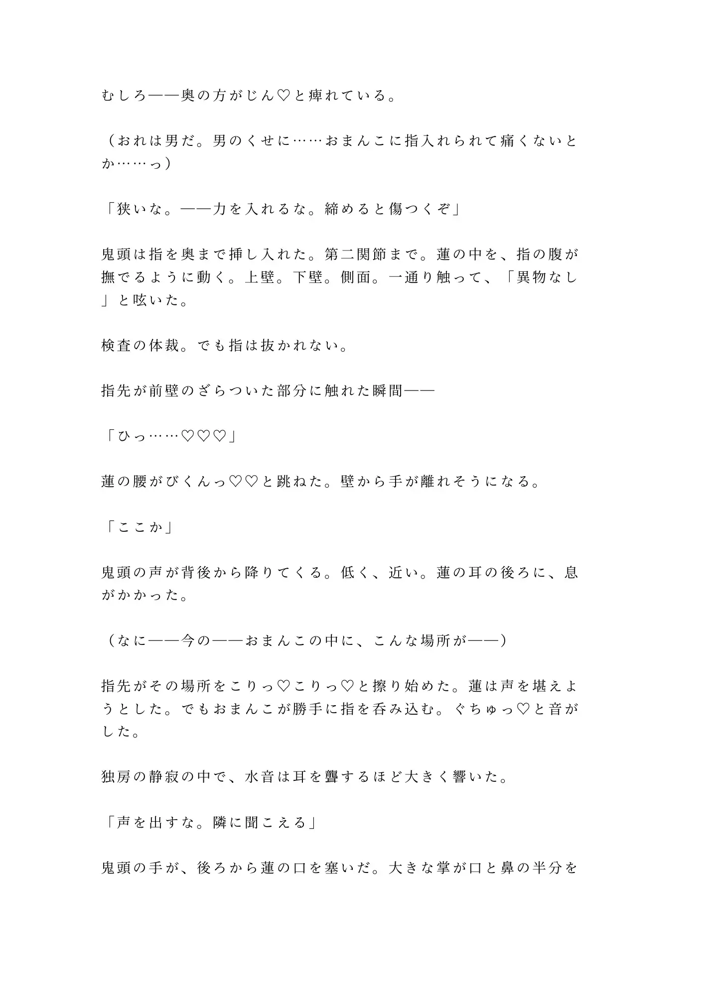 冤罪の怒りも、男としての矜持も、じゅくじゅくに濡れたカントの疼きに塗り潰されていく。自分から下着を脱いで待っていた四日目の夜、蓮はようやく気づく。もう戻れない場所まで堕ちていたことに。