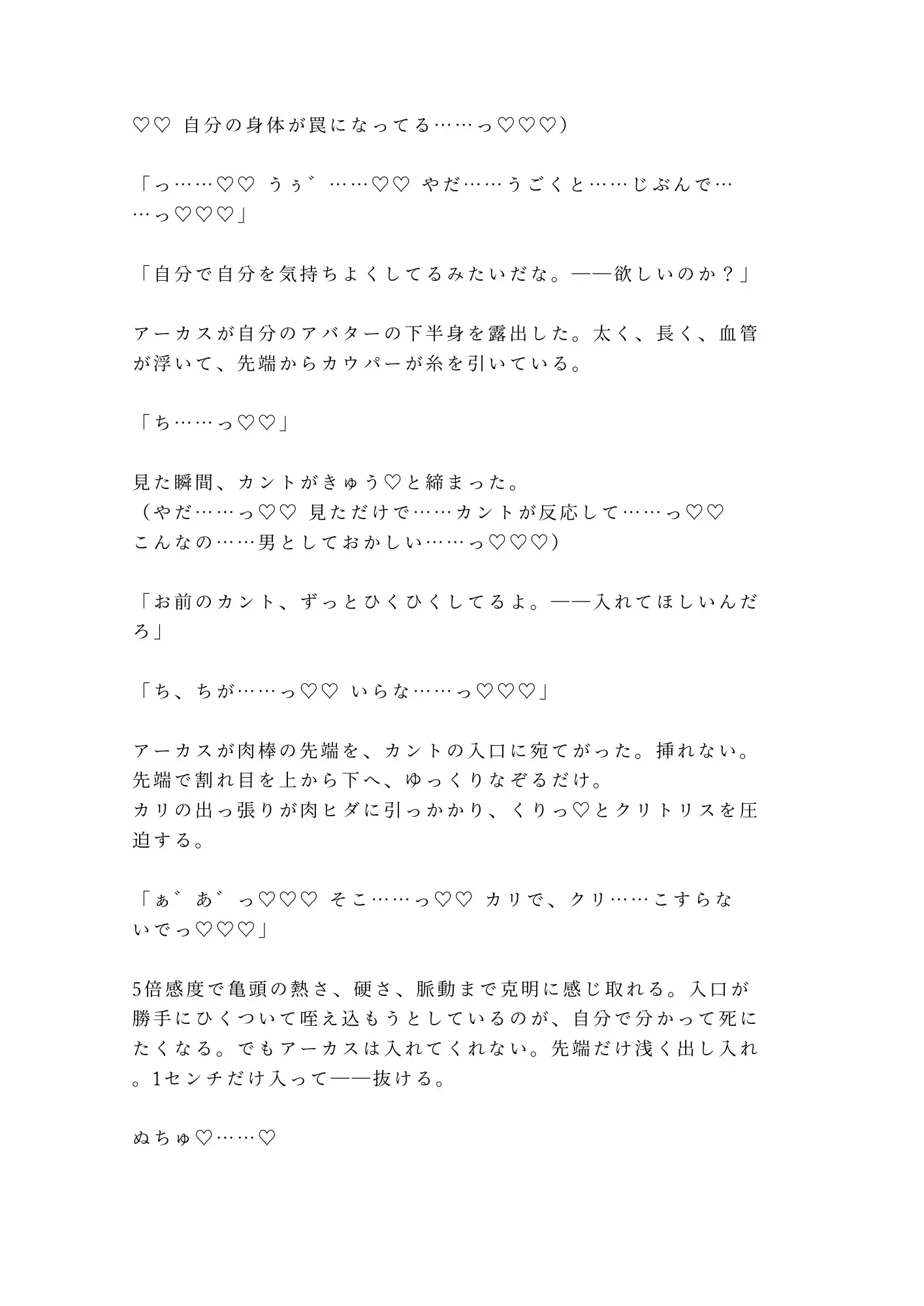 カントボーイ / VR・仮想世界 / 感度アップ / 監禁 / 中出し / 快楽堕ち / 雌堕ち / 支配 / 処女喪失 / 執着攻め