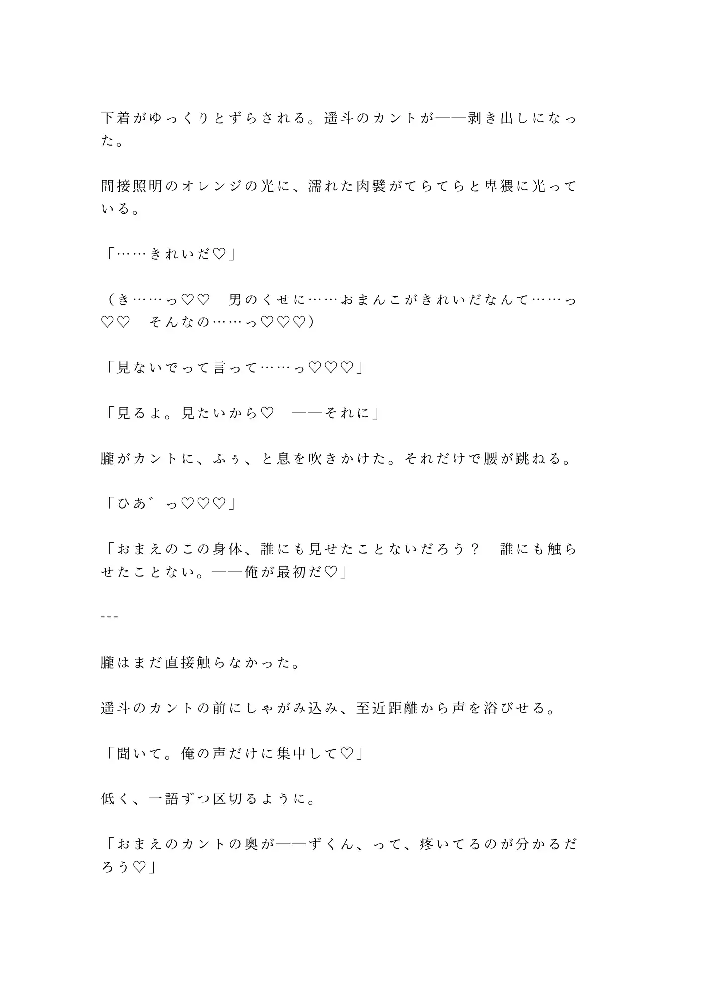 カントボーイ / 催○ / 声責め / 処女喪失 / 中出し / 快楽堕ち / 調教 / 支配 / 執着攻め / 雌堕ち
