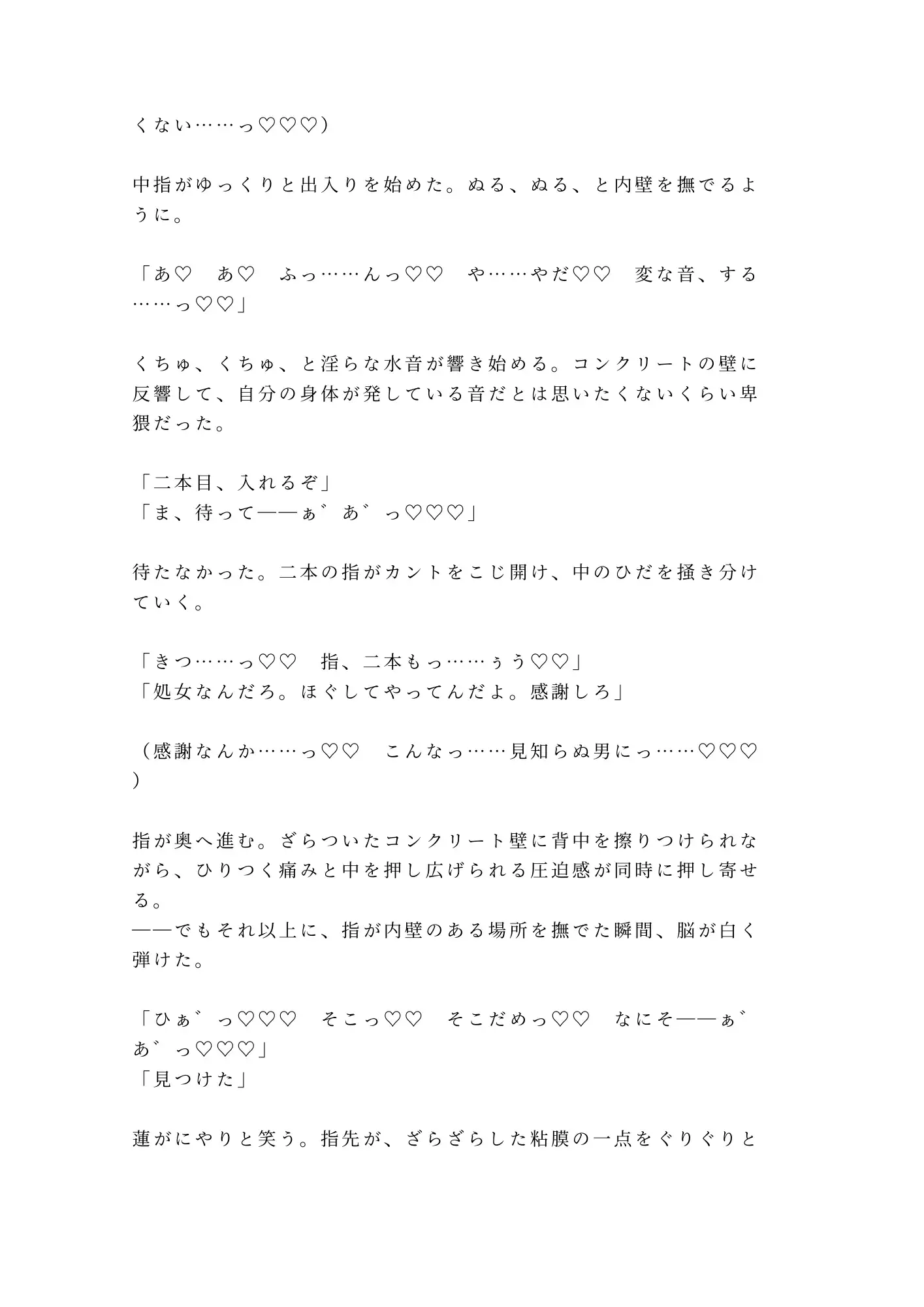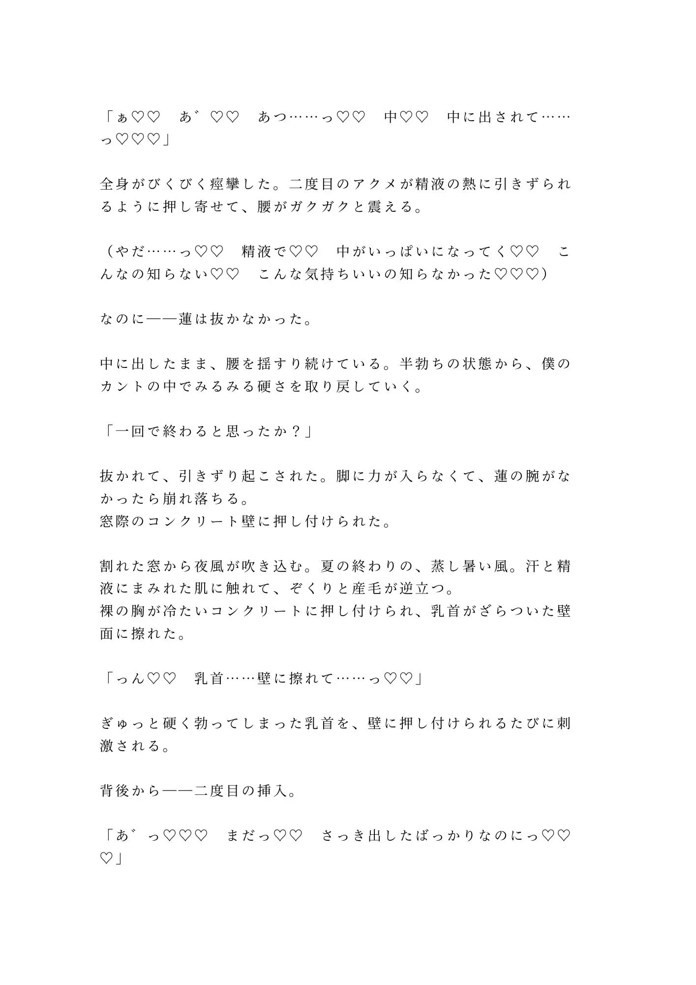 コンクリート剥き出しの密室に響く水音と喘ぎ声。割れた窓から覗く工業地帯の夜景。逃げたいのに腰が動く。嫌なのに身体が求める。奏の二十六年分の「普通」が、たった一晩で粉々に壊されていく。