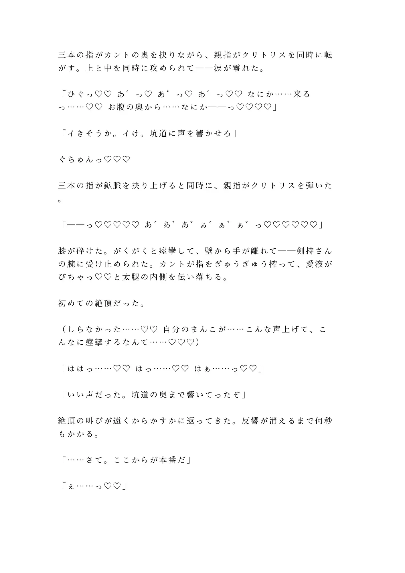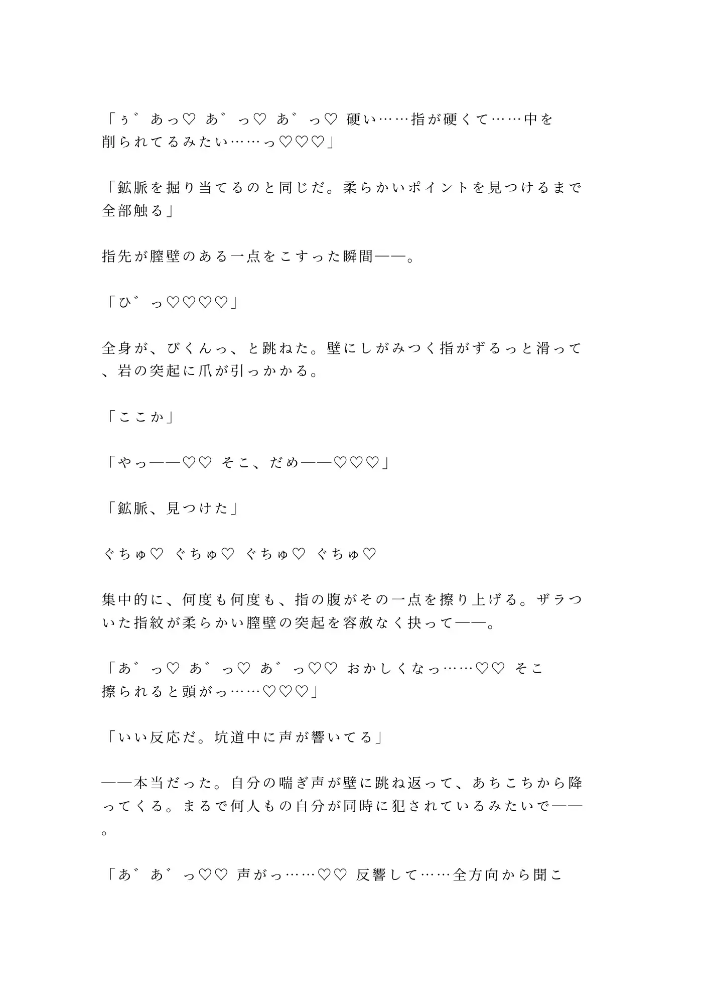 坑道が反響させるのは、水滴の音だけではない。自分の喘ぎ声が四方の壁を跳ね返り、まるで何人もの自分が同時に犯されているように降り注ぐ。