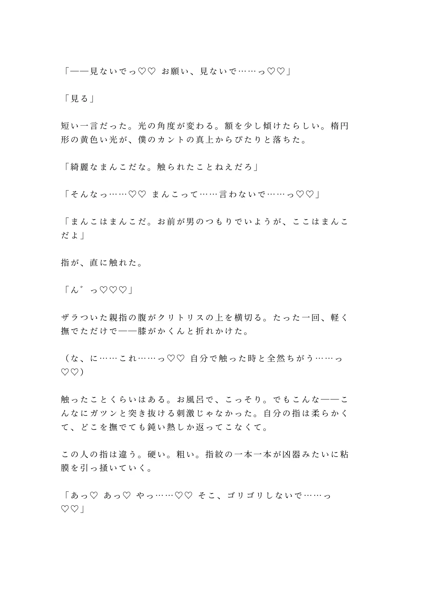 誰にも言えない秘密を抱えて生きてきた。男として生まれ、男として育ち、男として社会に立っている。けれど股の間には、あるはずのないものがある。──カントボーイ。その身体の秘密を、二十四年間、誰にも知られずに守り抜いてきた。