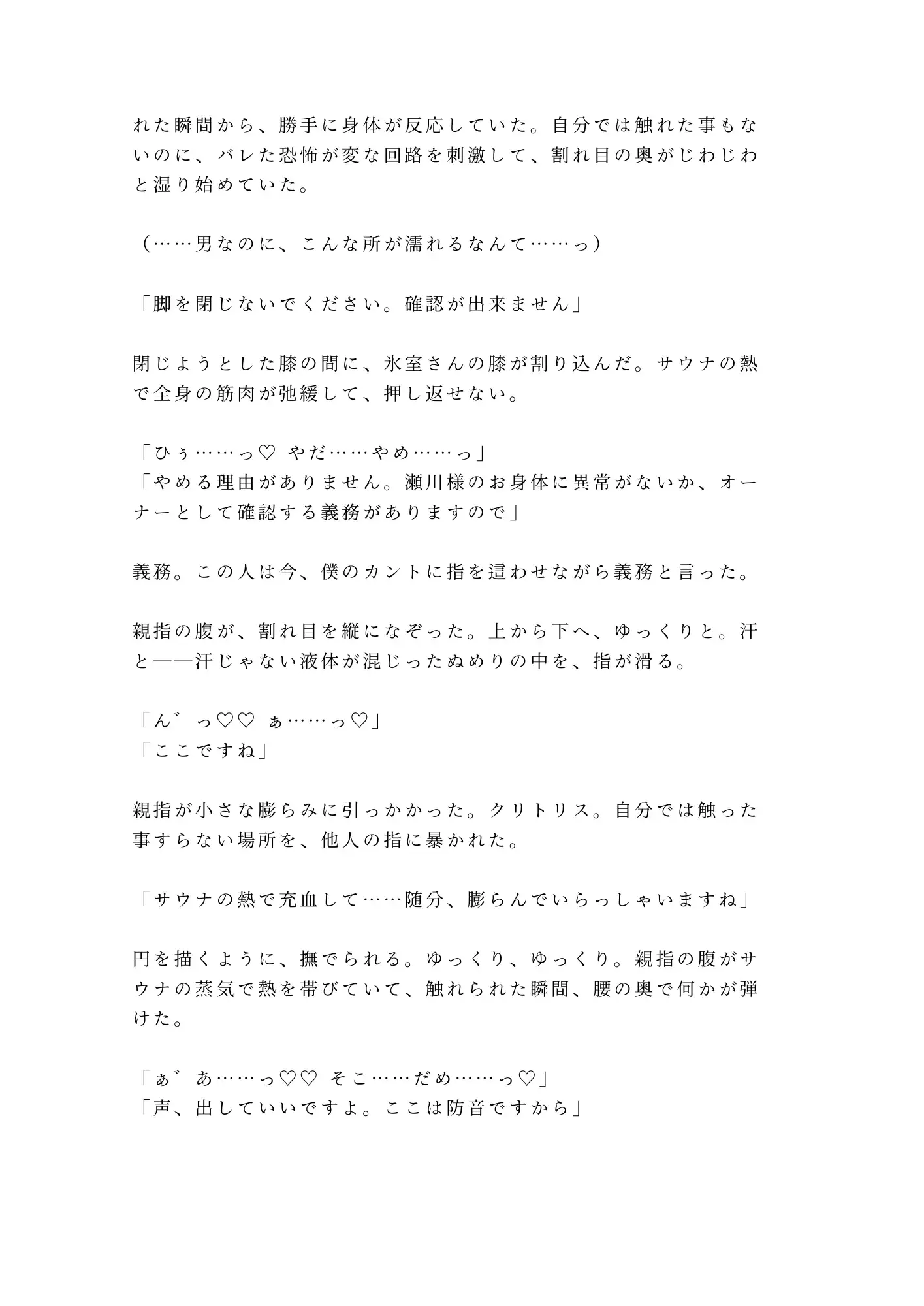 BL/カントボーイ/男の娘/サウナ/水風呂/常連客/中出し/快楽堕ち/密室/汗