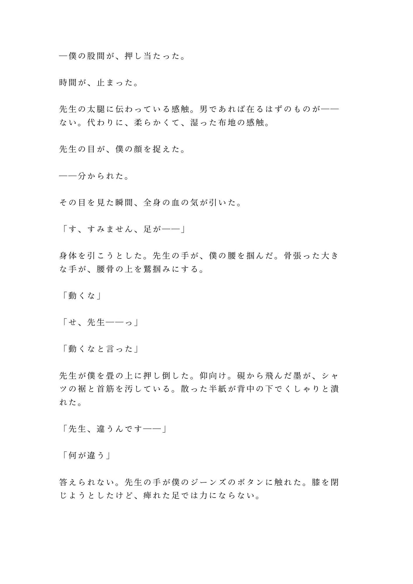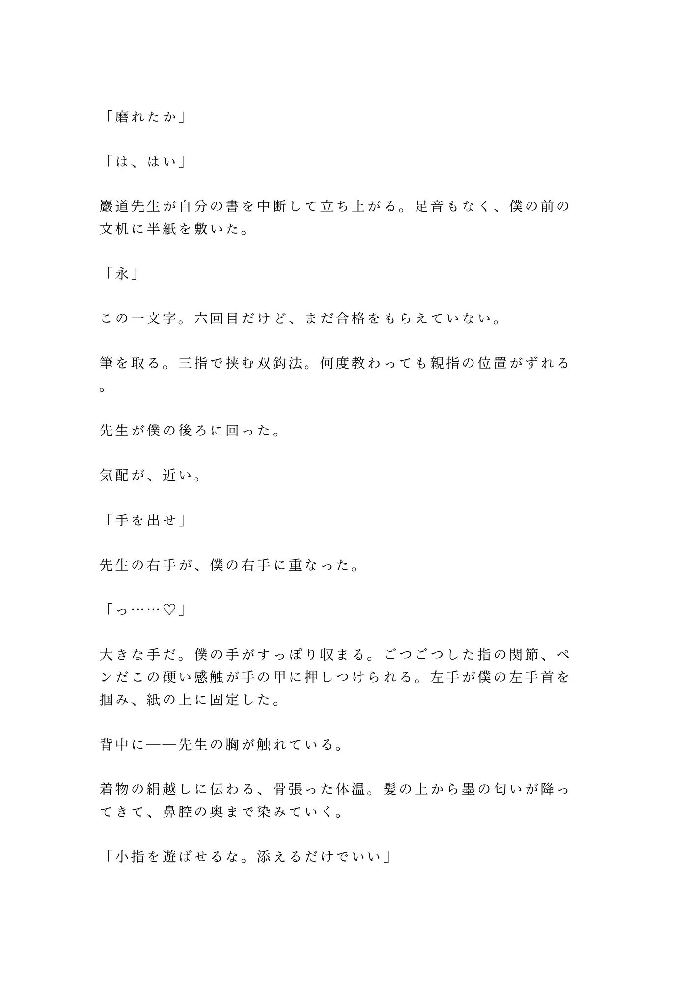 BL/カントボーイ/書道教室/書道家/畳/筆/中出し/密室/執着/正座