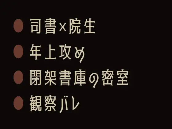 穏やかな知性の仮面の下に執着を隠し持つ司書×秘密を守り続けたカントボーイ院生。修論がある限り、この書庫には来なければならない。返却期限のない貸し出しが始まるBLカントボーイ官能小説。