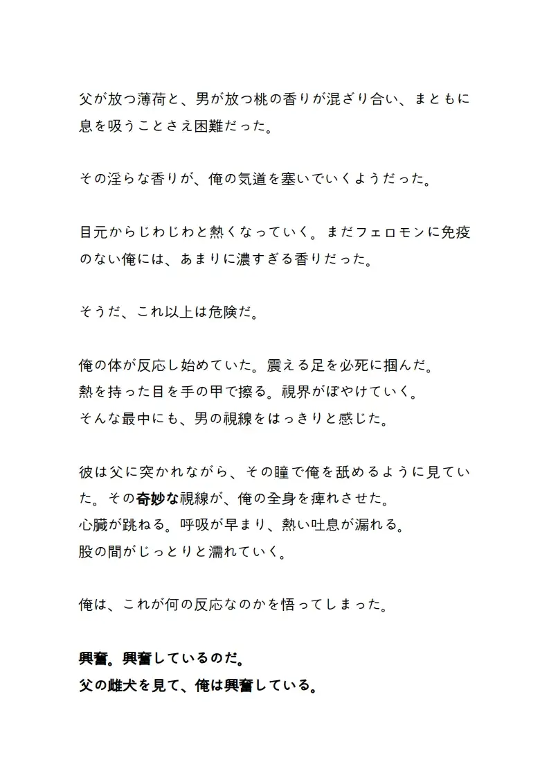 オメガに犯されているという羞恥心と、 喉元まで込み上げる快楽の葛藤。 容赦なくナカを埋め尽くす熱い精液と、 抗えない桃の香りに、湊の自我は紙屑のように崩れ去り……。