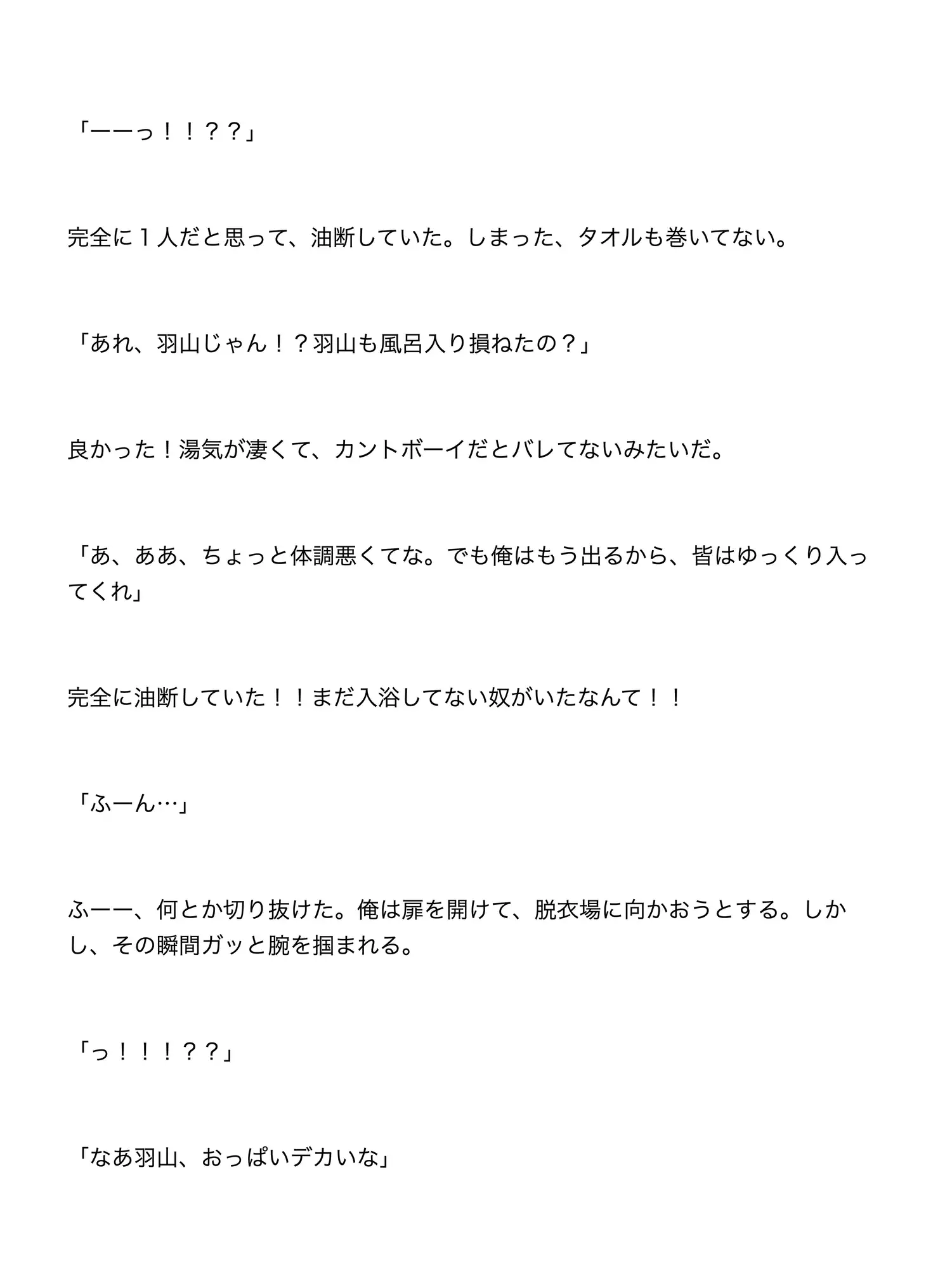 カントボーイの優等生が、柔道部のクラスメイトや親友に中出しされまくります。