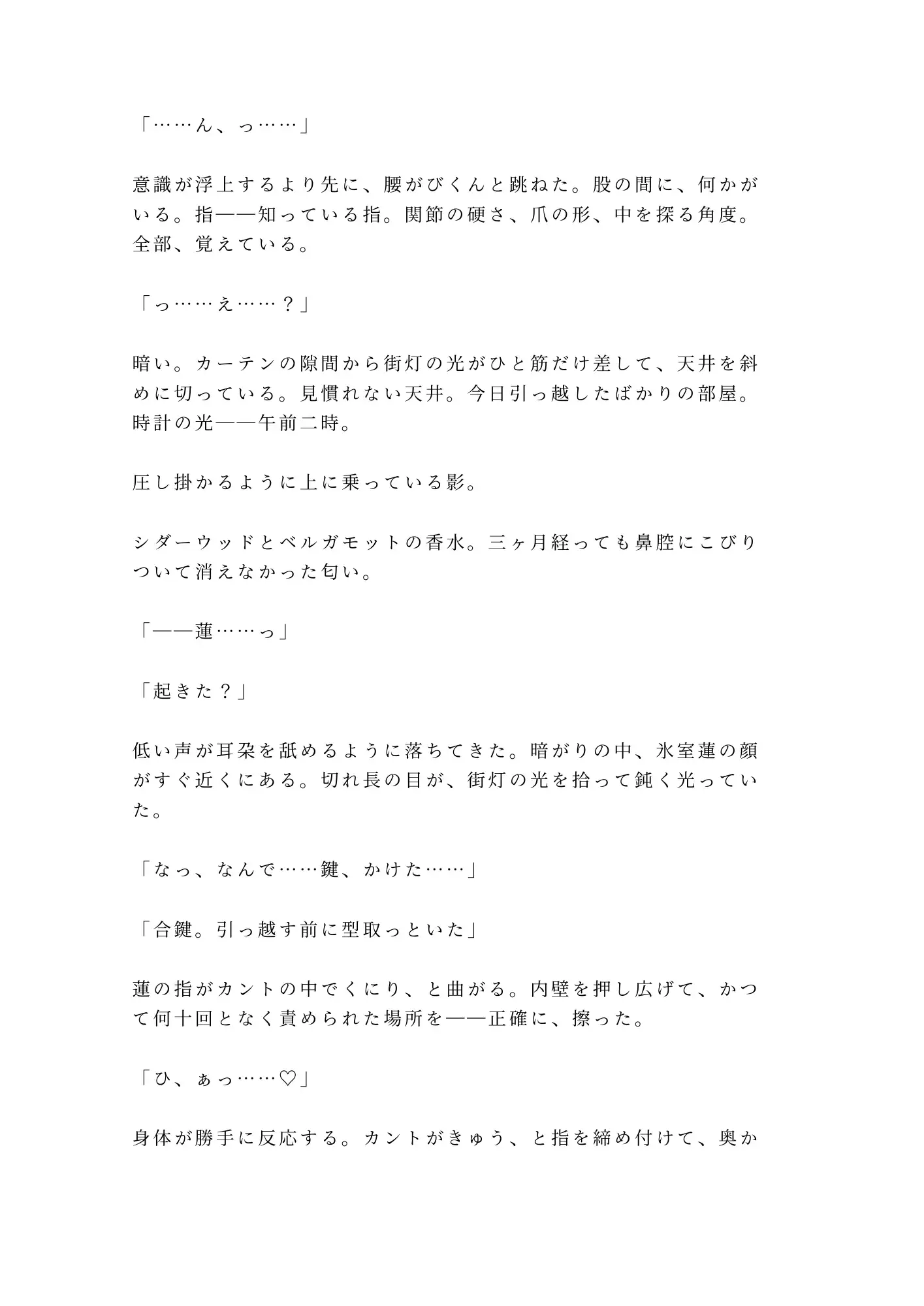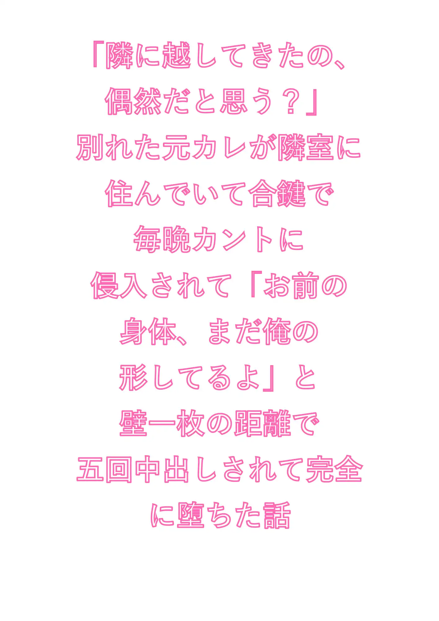 別れたはずの元カレが、隣の部屋に住んでいた。引っ越したばかりの深夜、合鍵で侵入してきた元カレ・氷室蓮。三ヶ月間、誰にも触らせなかった身体は、蓮の指が触れた瞬間、昨日の続きみたいに濡れ出した。