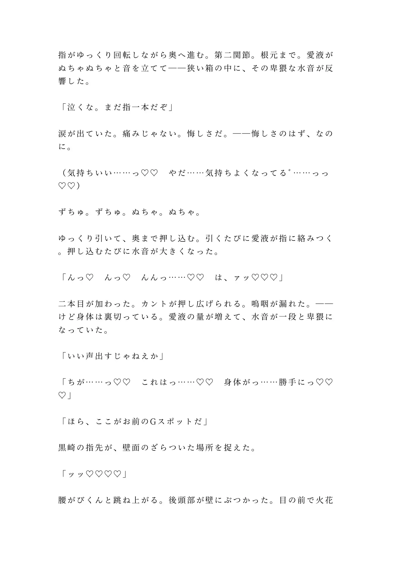 一度も自分で触れたことすらなかった場所を、太い指が暴いていく。初めての快感に理性が軋み、抵抗する声はいつしか甘い嬌声に変わり、鏡面仕上げのステンレス壁が乱れた自分の姿を映し出す。「録画データは俺が管理してる。消すも残すも、俺次第だ」——恐怖と背中合わせの興奮が、透を深い沼へと引きずり込んでいく。