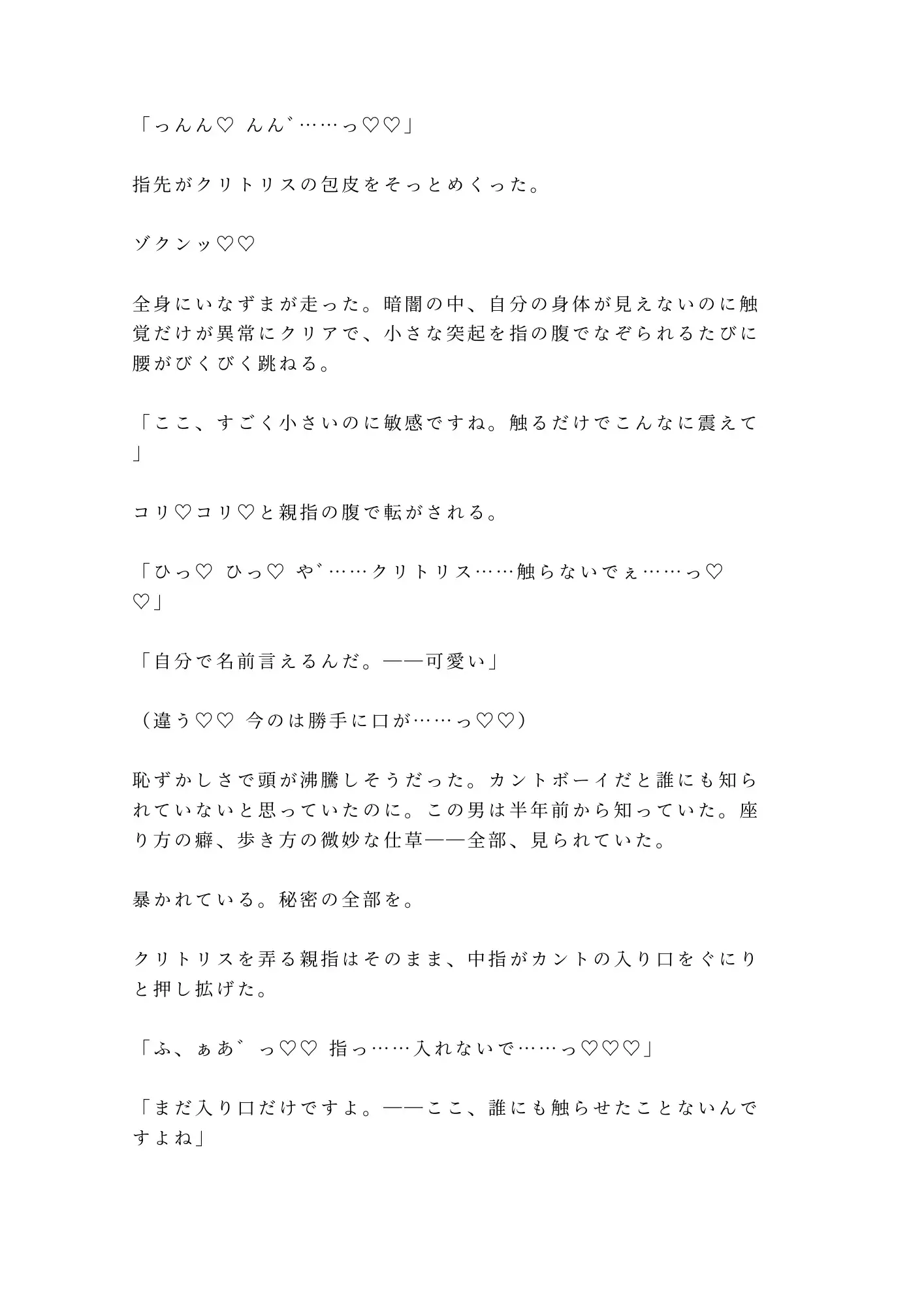 本作の見どころは、脱出ゲームの部屋が進むごとにエスカレーションする羞恥と快楽の設計図です。知的で冷静な受けが、自分の身体の秘密を一つずつ暴かれ、認めさせられ、最終的に四回の中出しで完全に堕とされるまでの全過程を、濃密な描写でお届けします。攻めの氷室は紳士的な口調を崩さないまま容赦なく追い詰める”丁寧な獣”。逃げ場のない密室で、論理では太刀打ちできない快楽に呑まれていく湊の姿を、どうぞ最後までお楽しみください」