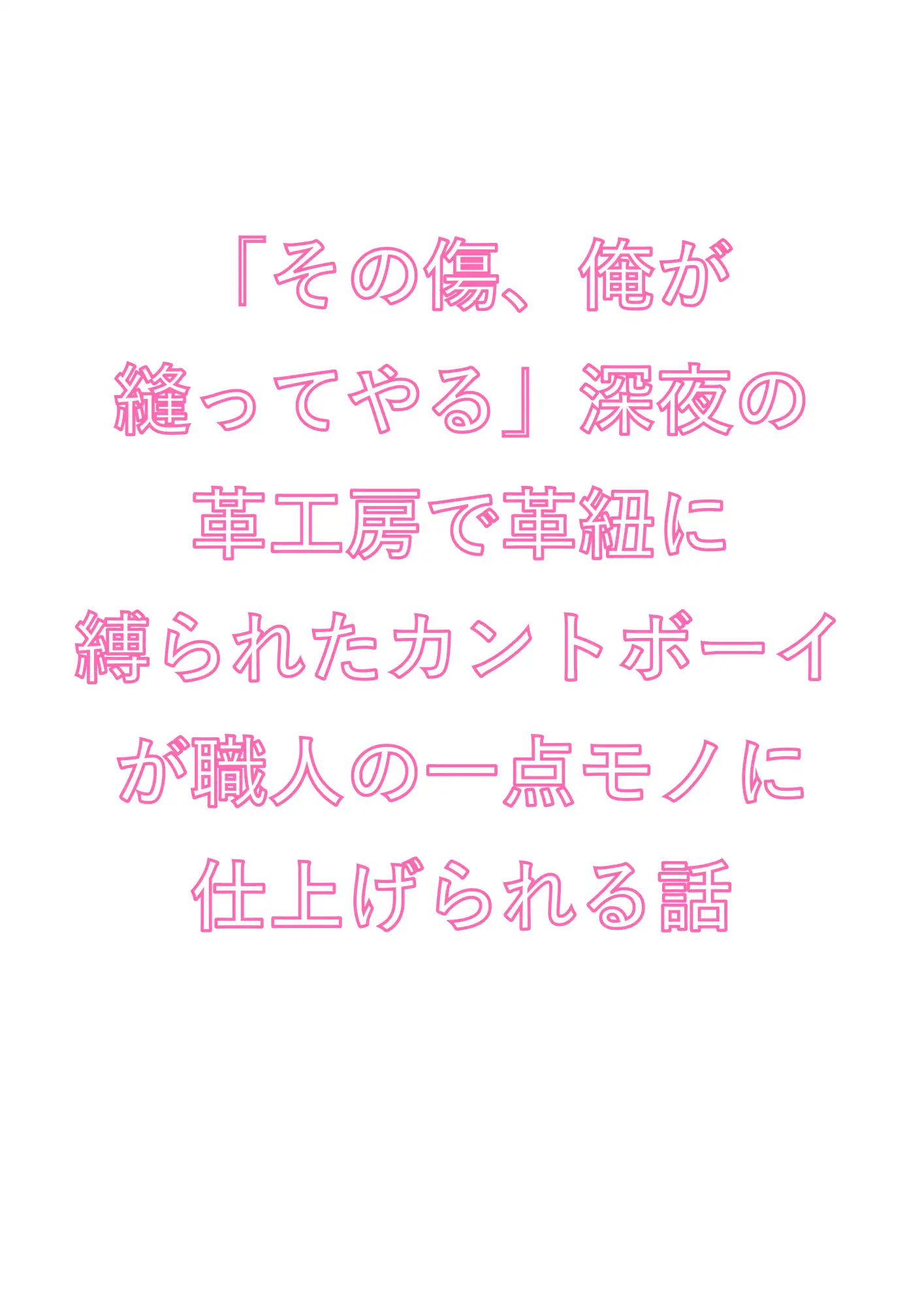 革の仕立てと身体の仕立てが重なり合う、唯一無二のシチュエーション。使い込まれた革紐の拘束、タコだらけの指の粗い刺激、なめし油の匂いに満ちた密室——五感すべてを支配される快楽堕ちをお届けします。男として生きてきた身体が、職人の手で「一点モノ」に仕上げられていく背徳と快感を、どうぞ最後の一行までお楽しみください。