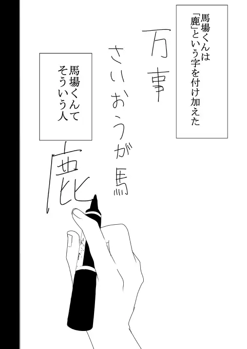 ー馬場くんの家にはお菓子もゲームあるから、ついつい行ってしまうけど、いつも途中から変なことになるんだー家庭に息苦しさを抱えた馬場くんと鹿島くん。どんよりしているのに、ゆるい二人の日常を描いたお話です。