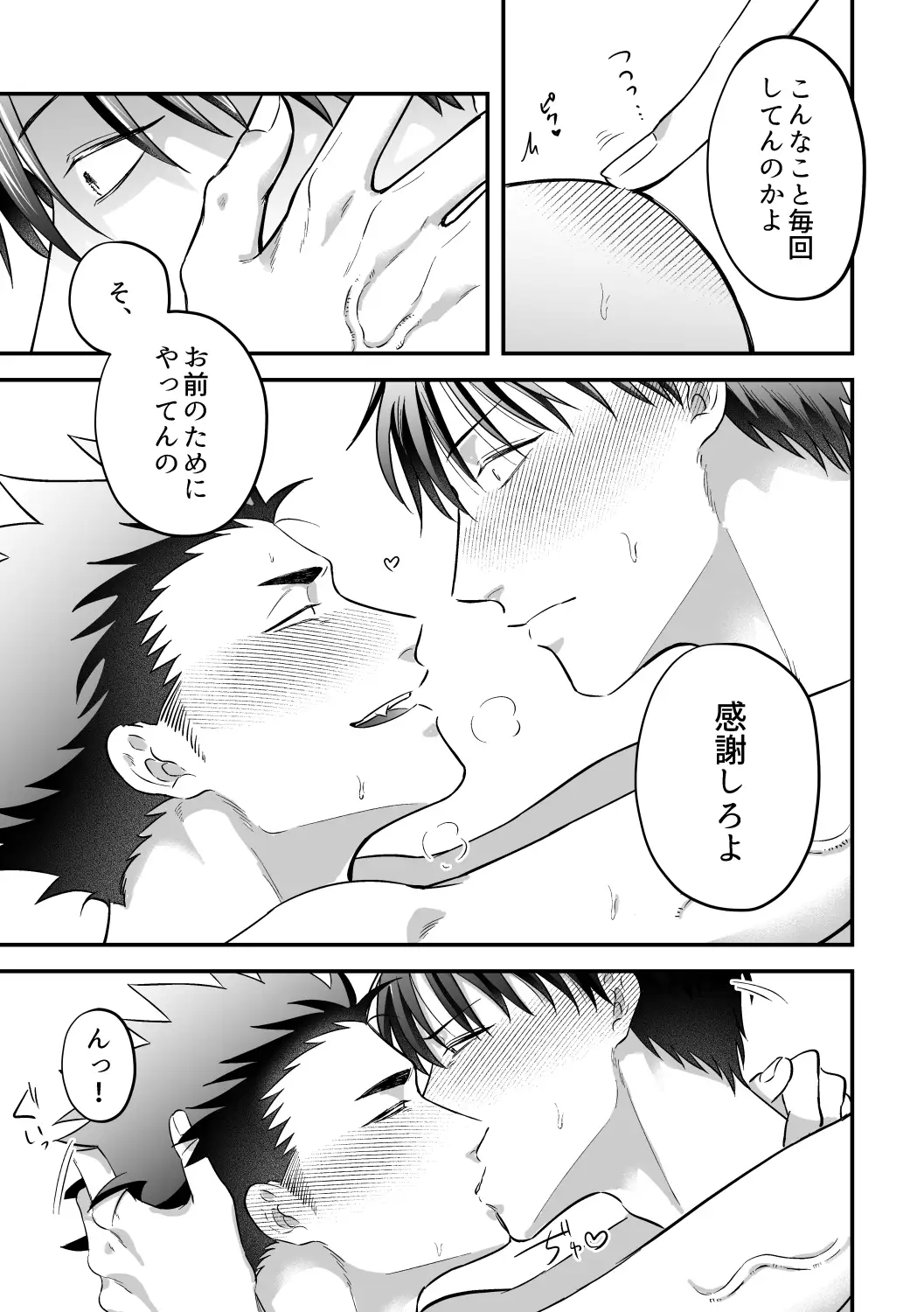 性的趣向:三白眼ガチムチ受け・垂れ目イケメン攻め・男性同士・アナル・結腸責め・イチャラブ・乳首責め・焦らし・言葉責め・ローション・連続絶頂・潮吹き・放尿・中出し・お仕置き・日常