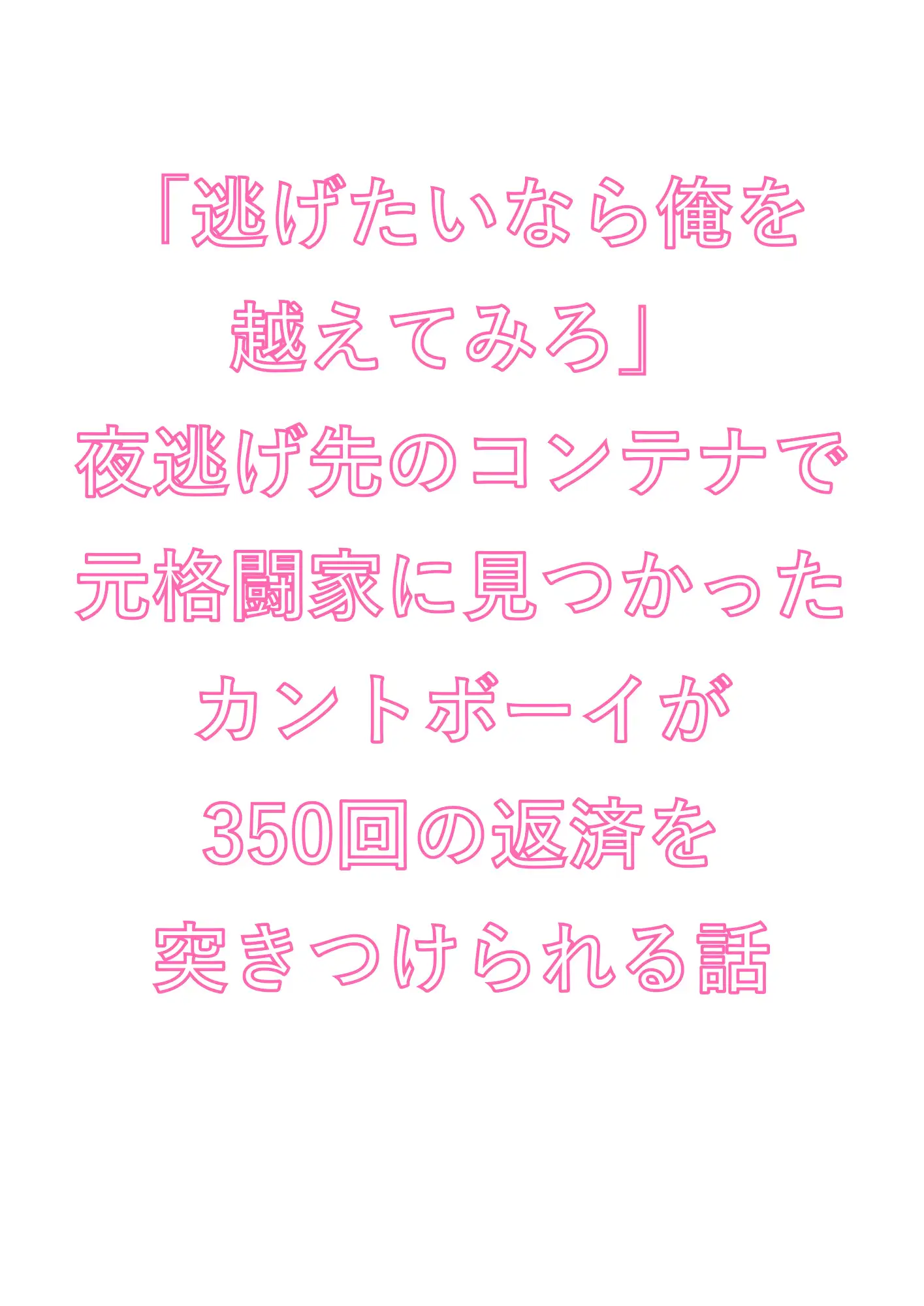 抵抗が快楽に塗り替えられていく即堕ちの疾走感と、「350回」という気の遠くなる返済が約束する長い長い調教の予感。コンテナという密室で始まる、逃亡者と管理人の身体だけの契約関係をお楽しみください。