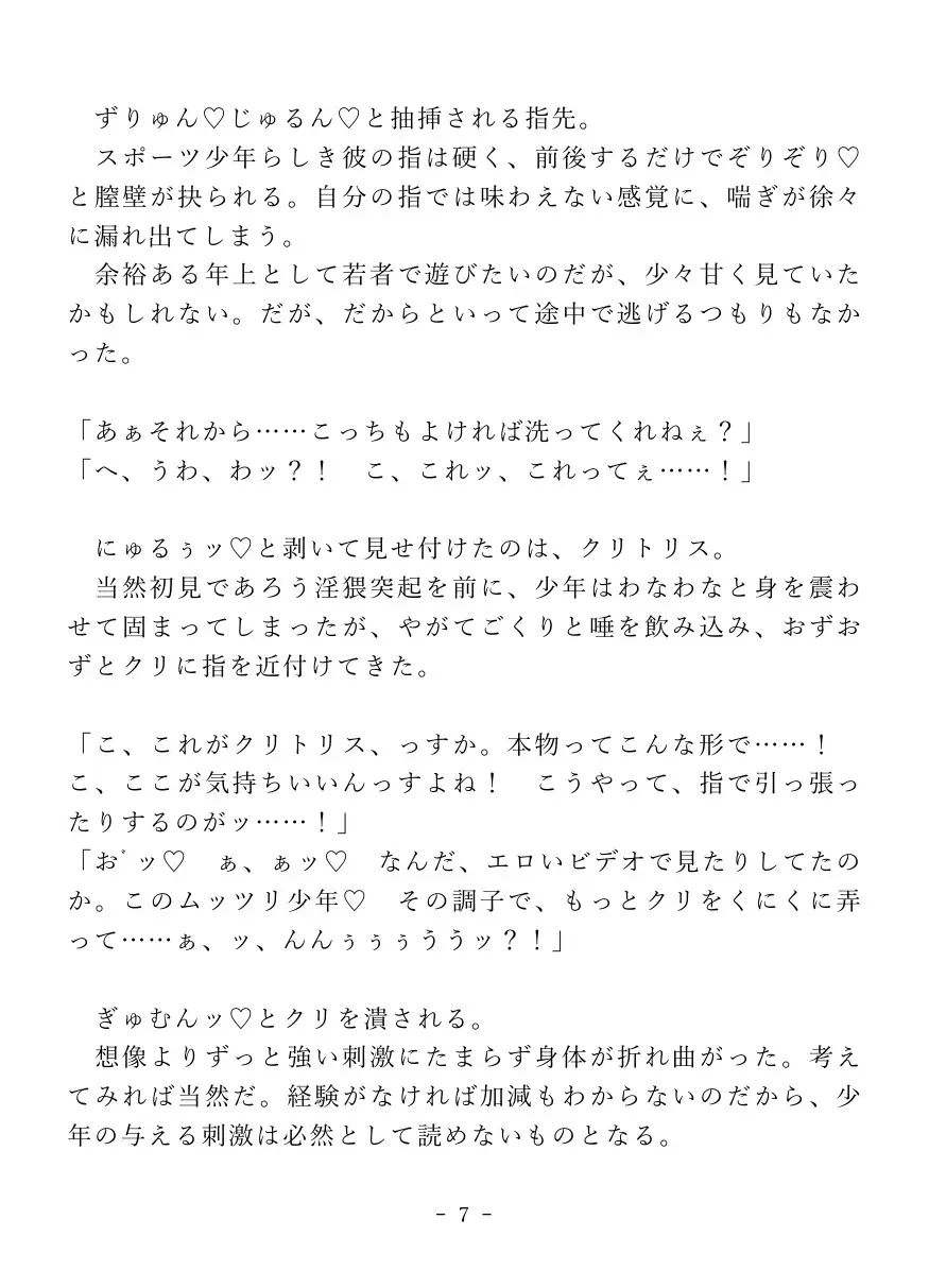 何も知らずにやってきた少年へのおまんこ見せ付けから始まって、最終的には思春期ちんぽを淫乱おまんこで搾り取ってしまいます。