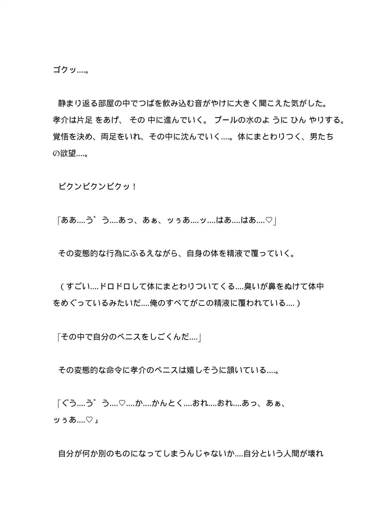 その公演には部員の品評会という目的があり、人気の部員を監督が媚薬を使いながら時間をかけて調教し、精液風呂につけて精子に慣れさせ、客に差し出していく‥‥。開発、媚薬、羞恥踊り、バイブ責め、脅〇、管理、精液風呂、売り、アナニー、モブ〇等。