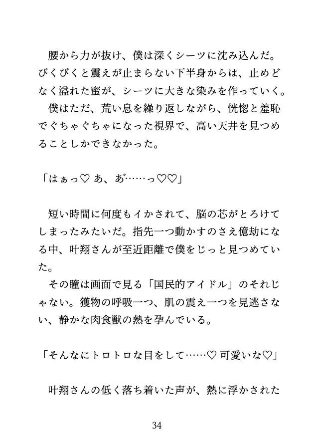 ついには、羞恥さえも溶かされた身体で、憧れの推しに奥深くまで満たされて――。攻め:叶翔(国民的トップアイドル、α)