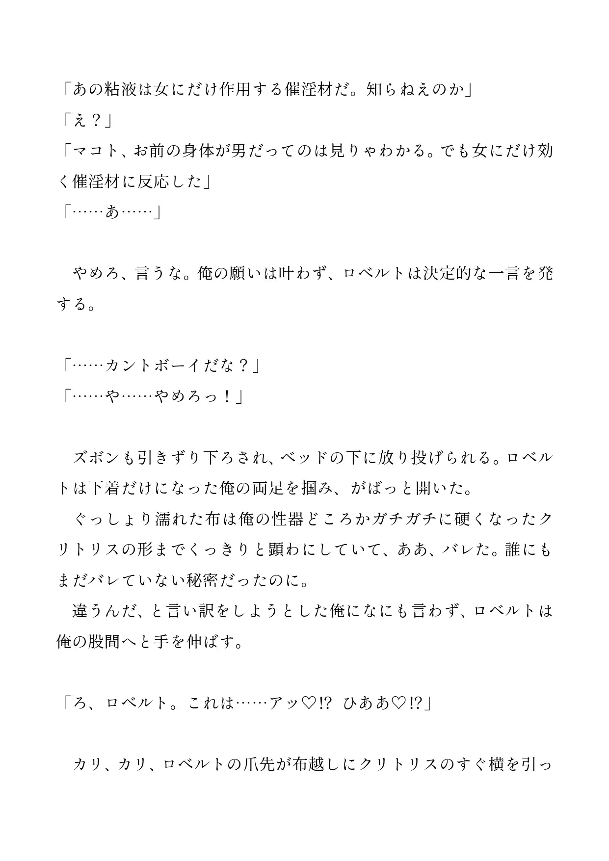 カントボーイを隠している元男子大学生のマコトが催淫粘液を浴びて発情、カントボーイバレしてしまい、
