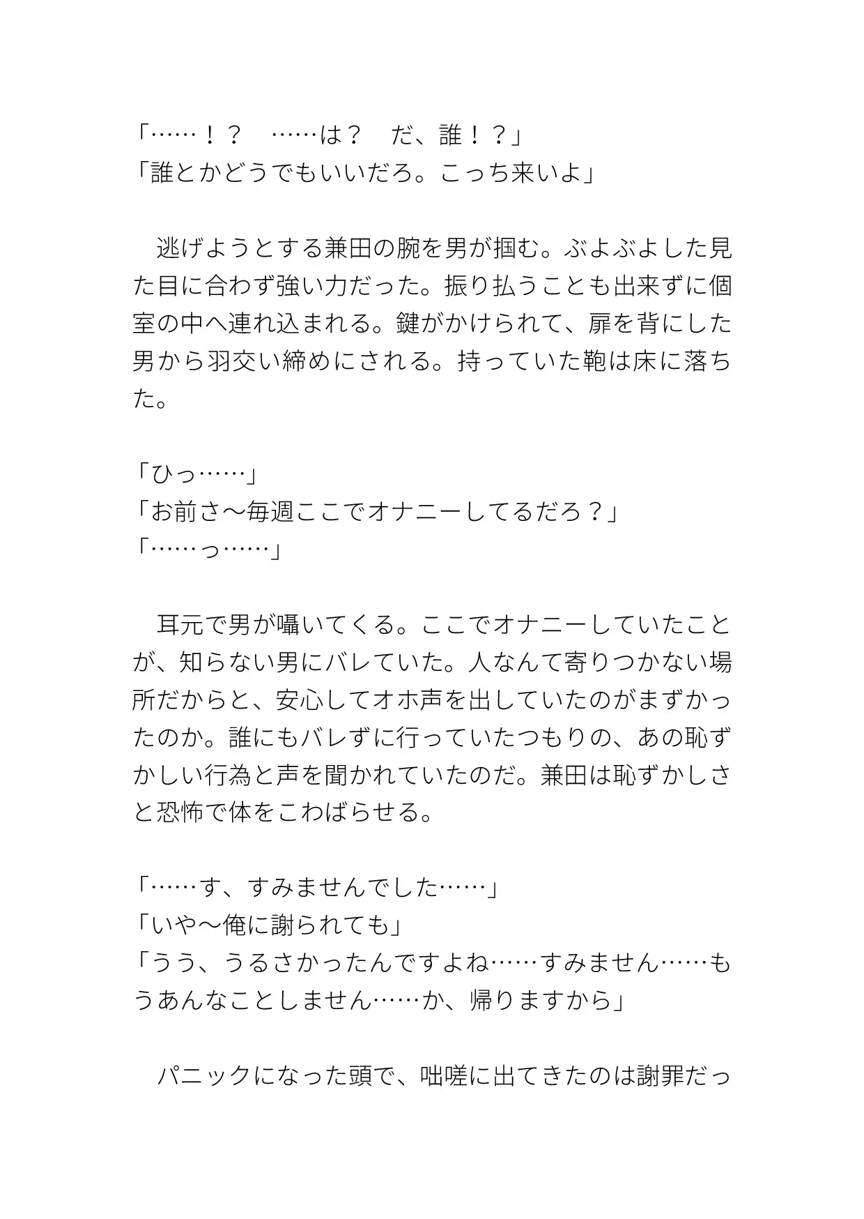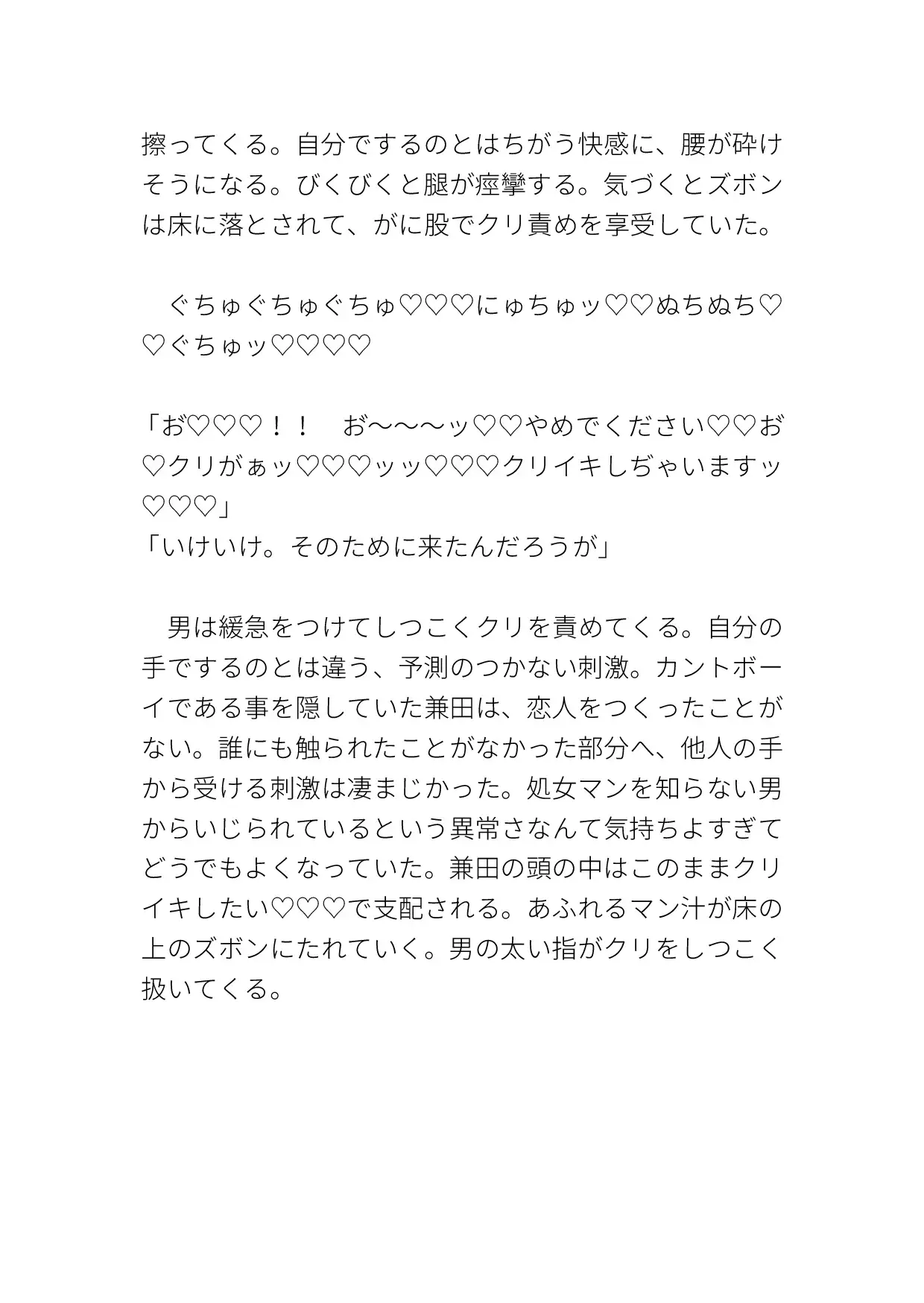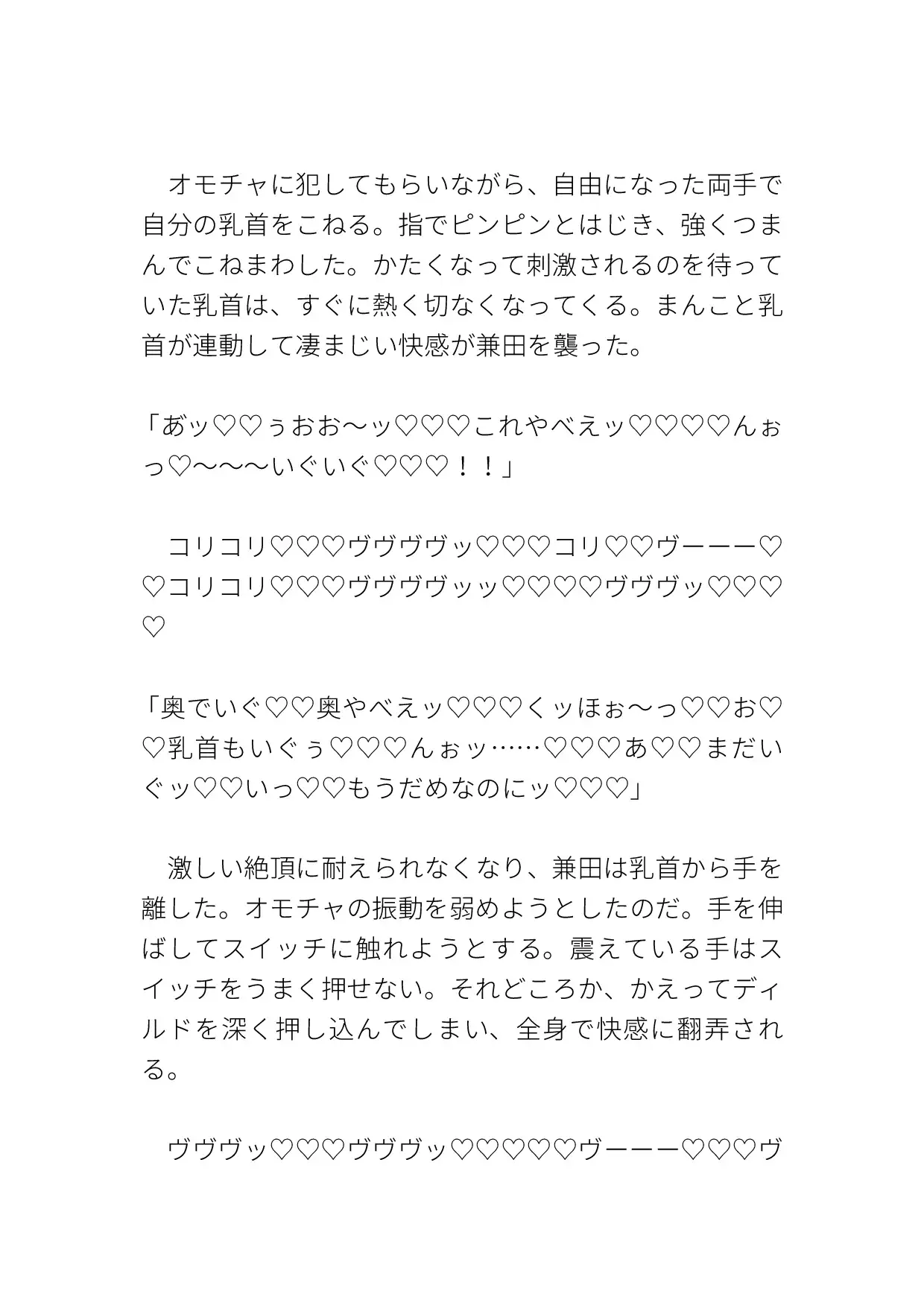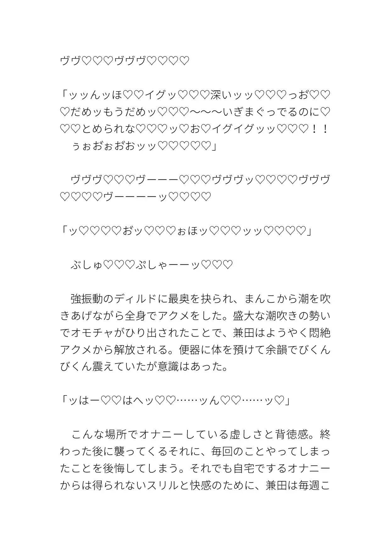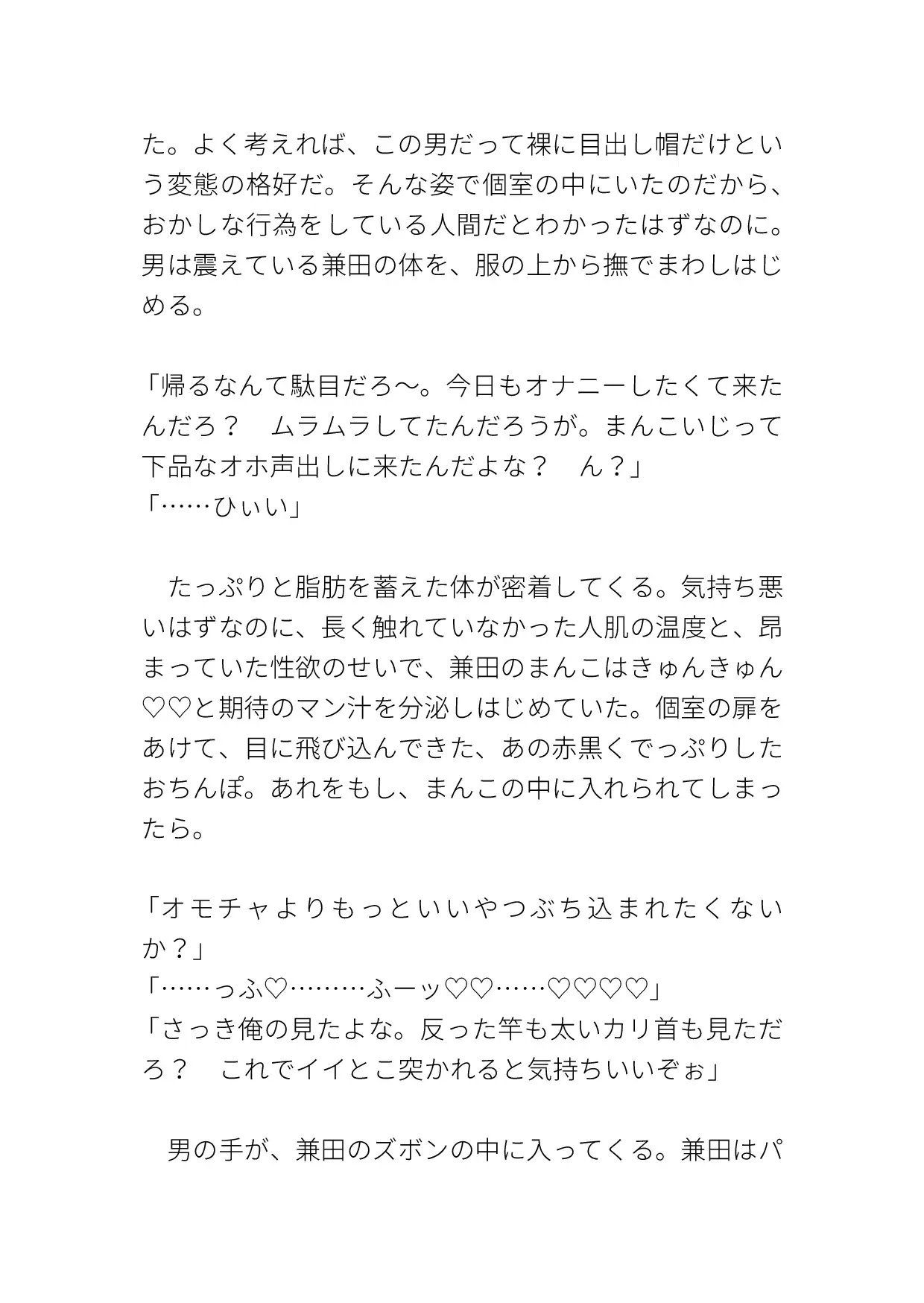 いつものようにオナりに来ると、知らない男がいて犯されてしまう。クリも乳首も責められ、激しく突かれて中出しまでされる。ハート、濁点、擬音表現など込みで約10000字。