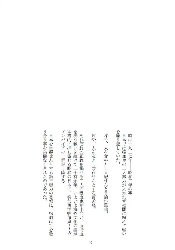 時は昭和二年。日本では吸血鬼の二大勢力が人知れず戦いを繰り返していた。