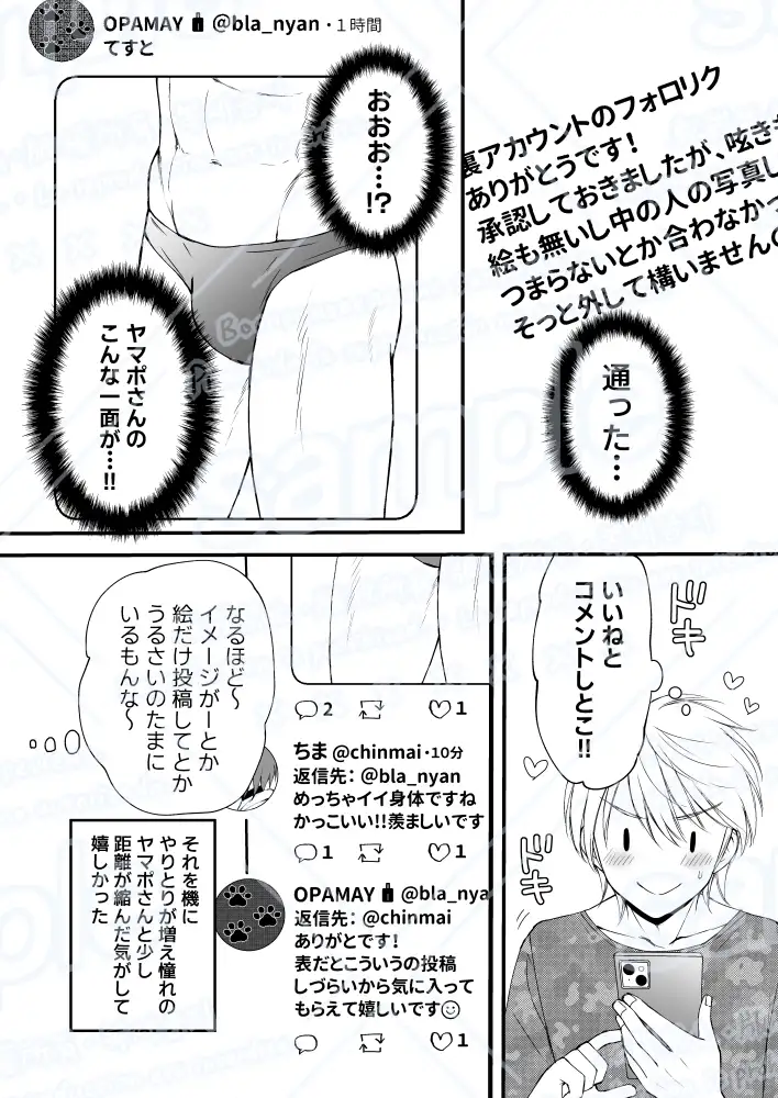 交流を重ねる内に駒井もヤマポ以外には秘密の裏アカを作り、