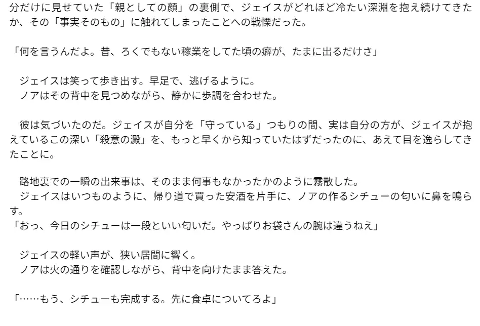 本作は執筆・推敲の過程で、AIによる文章支援を利用しています。物語の構成や心理描写の深掘りを行うために活用しておりますが、ベースとなる世界観やプロットはすべて自身で制作したものです。