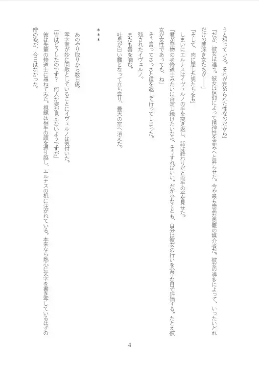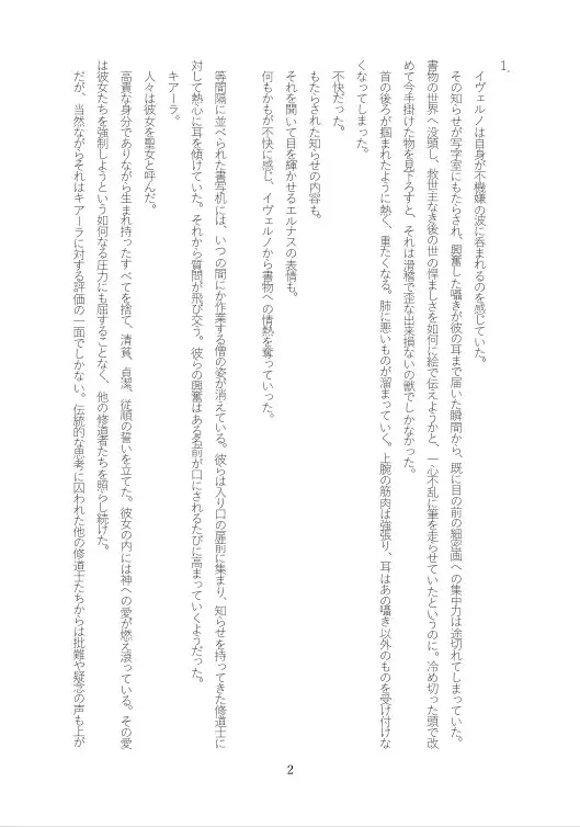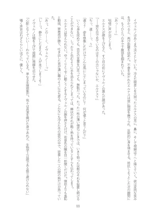 彼の視線の先には、真面目で誠実な修道士、エルナスの姿がある。イヴェルノにとって、エルナスは夏の太陽のように眩しい存在だった。