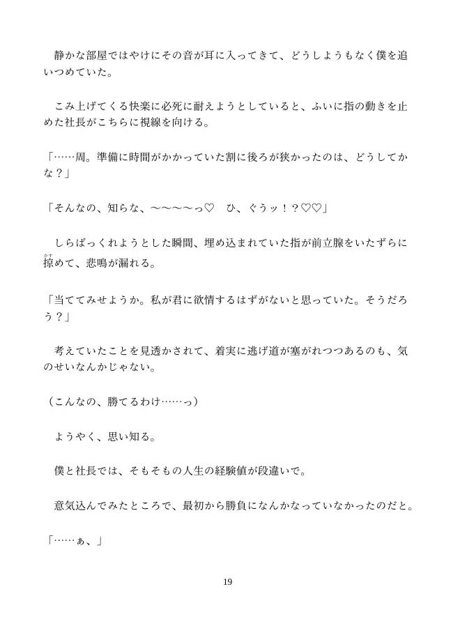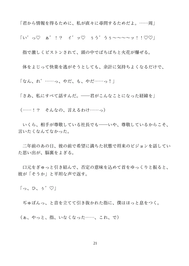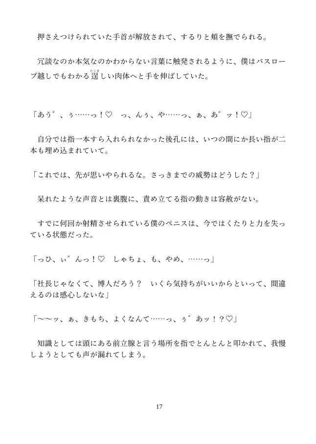 なんの因果か企業スパイとしてやってきた周を、今度こそ逃がすつもりはない。キーワード:フェラ、濁点喘ぎ、ハート喘ぎ、連続絶頂、潮吹き、対面座位、中出し