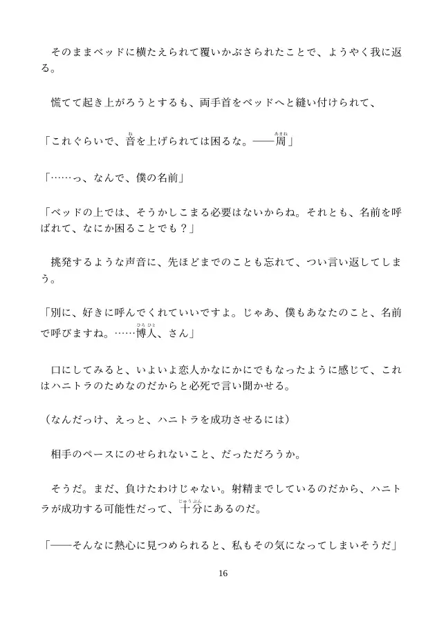 ハニトラどころか、同性同士での性行為自体が未経験。〇鷹宮博人(たかみやひろひと)