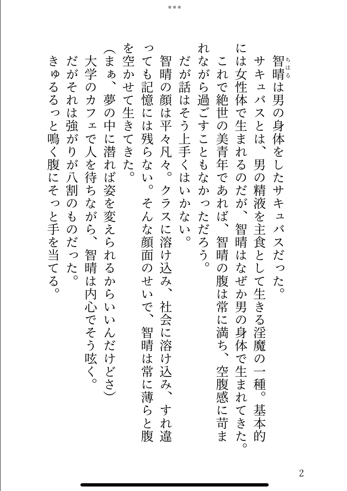 平凡な見た目をした智晴は人間ではなくサキュバスである。男の精液を食事にして生きる生き物だ。