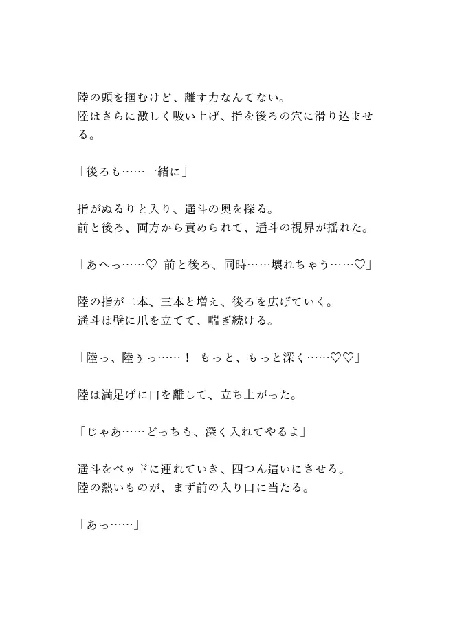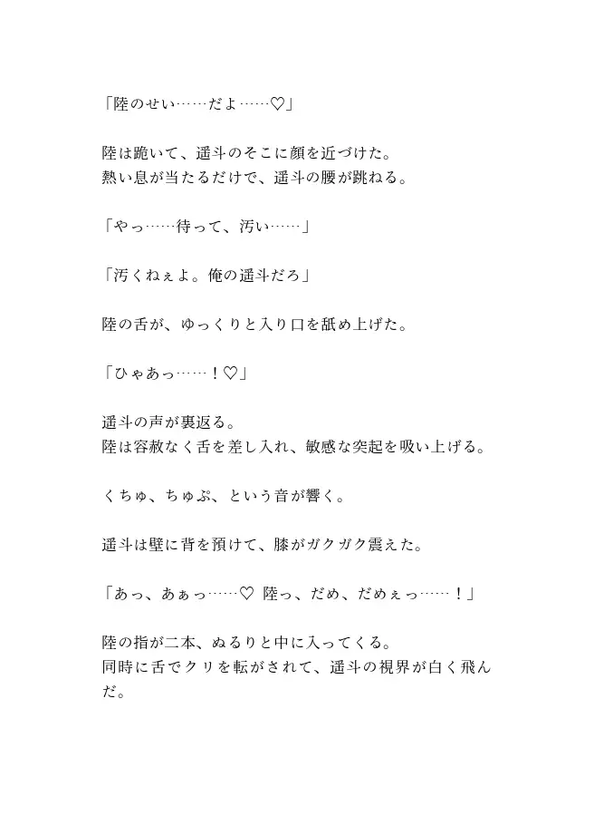 幼なじみの陸と再会した遥斗は、カントボーイ体質になった秘密を告白する。