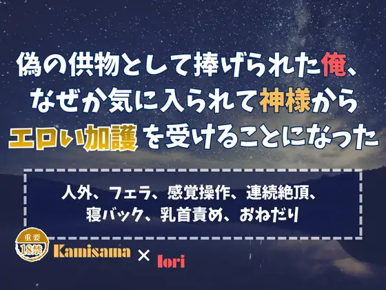 しかし性別は無関係だという無節操な神様は、様々な力を駆使していおりを翻弄してきた。感度上昇、媚薬精液、失神防止に疲労抑制などなど、人同士ではありえない力技で、経験のないいおりの身体は徐々に神様の思うままに操られていく。そして蝕まれていくのは、身体だけではなくいおりの心も一緒で――!?