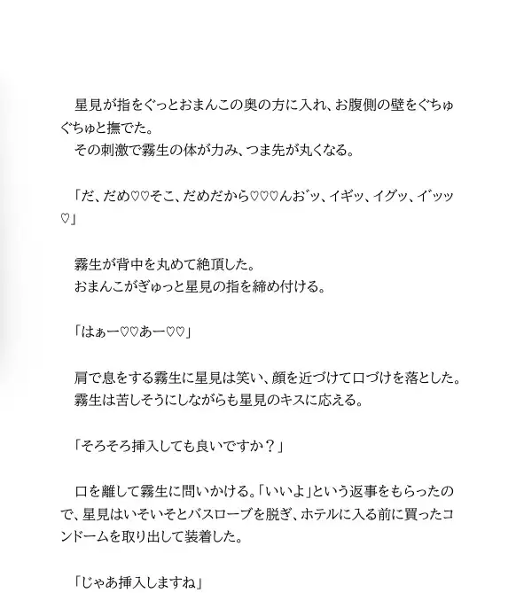 霧生のオナニー姿を見せてもらったり、オナニーを見せ合ったり、乳首を責めたり。