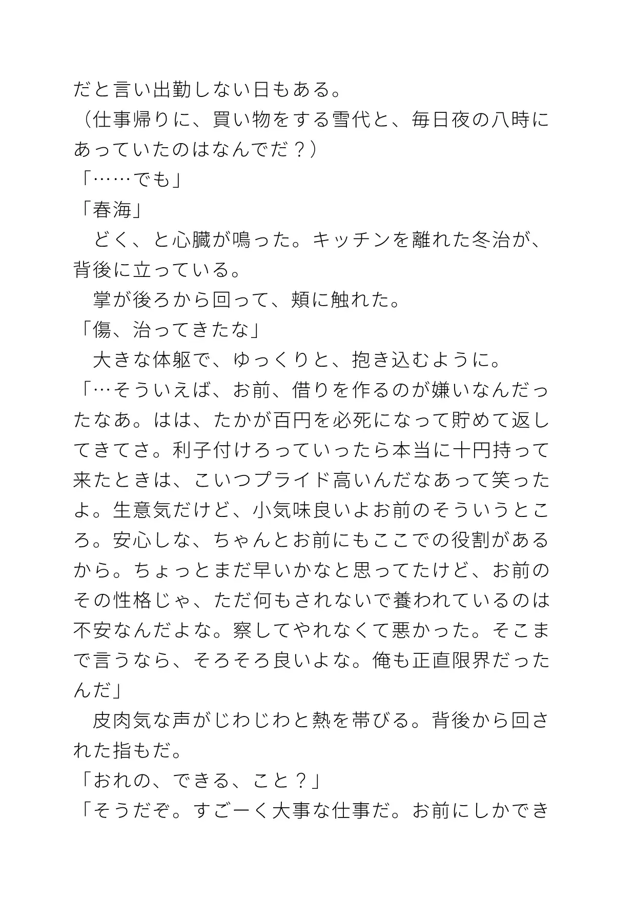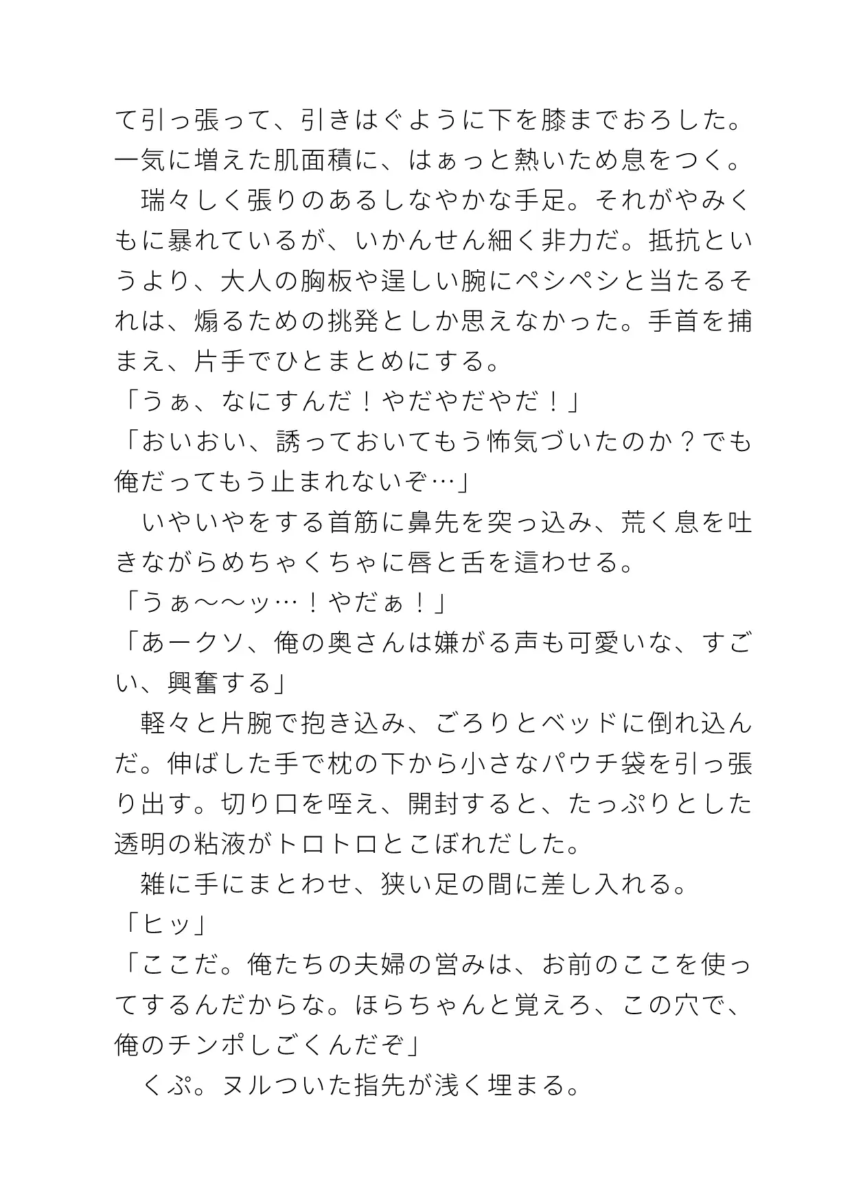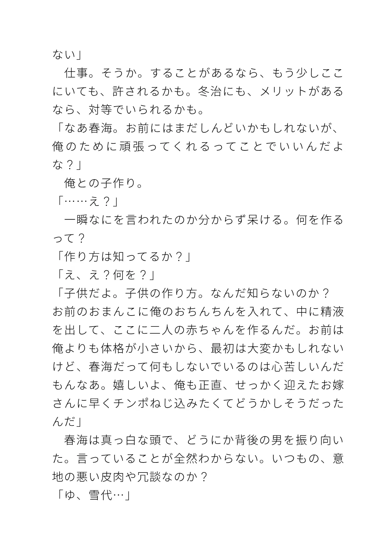 出て行こうとする受に、男は子作りを求め…。