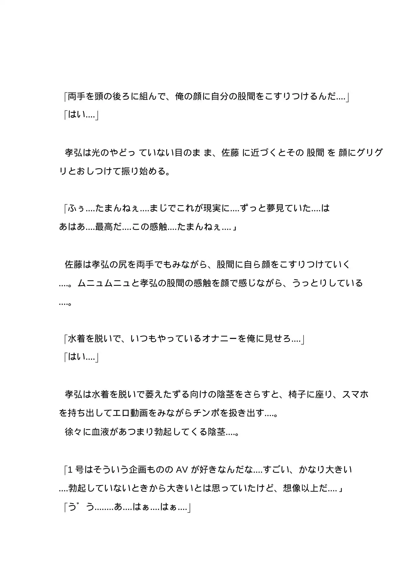 飛込競技部に所属する部員が、マネージャーに催○アプリを使われて、言いなりにされていく展開です。