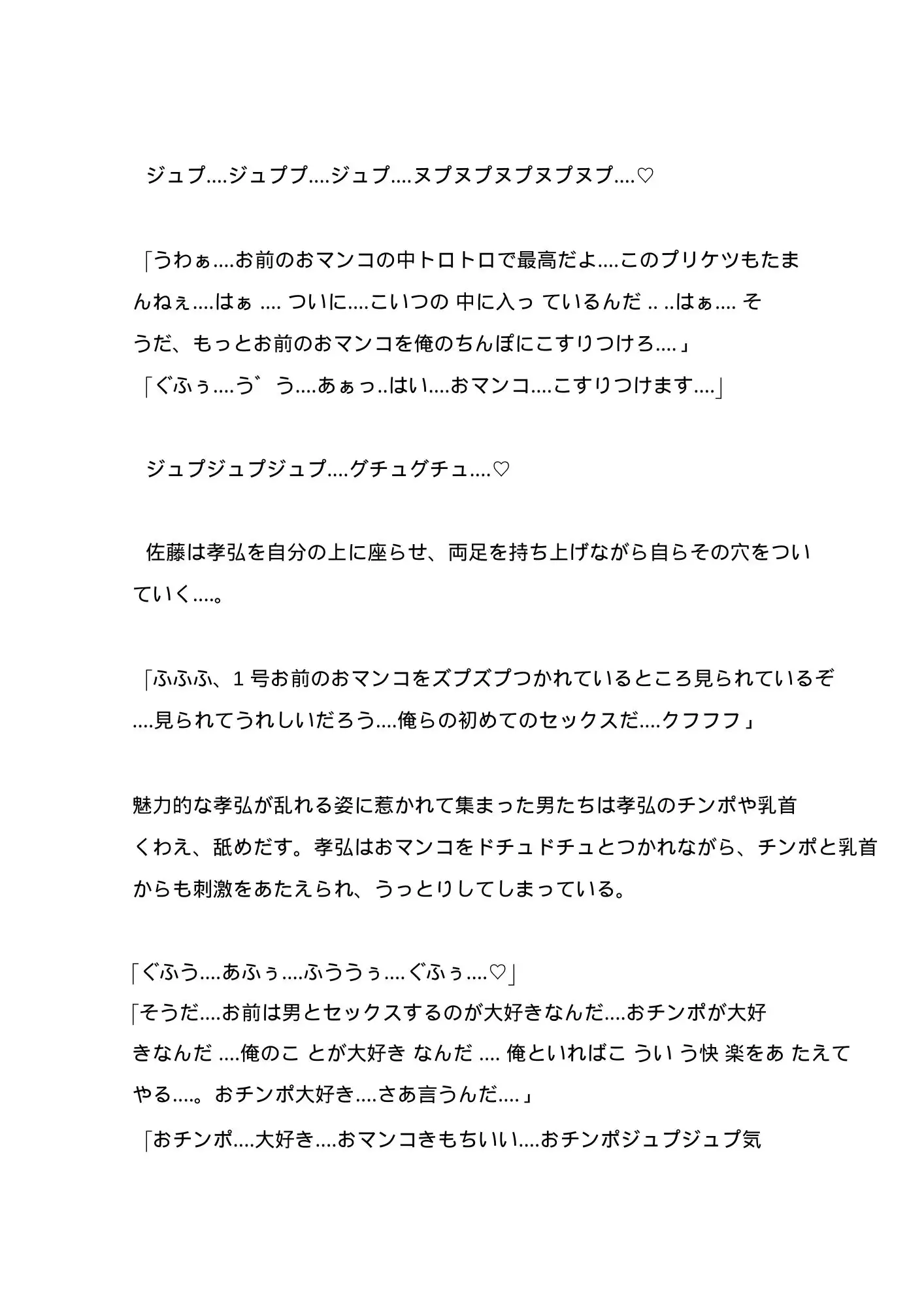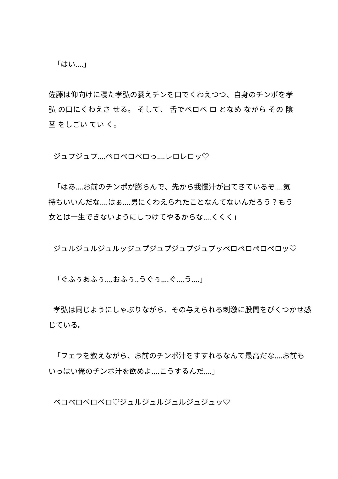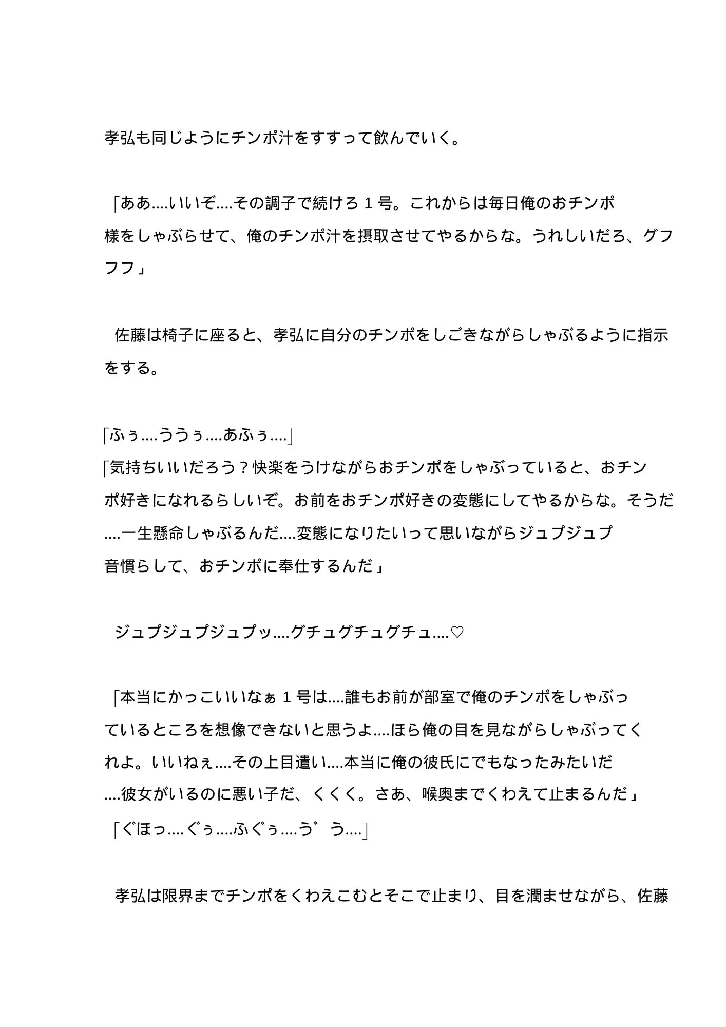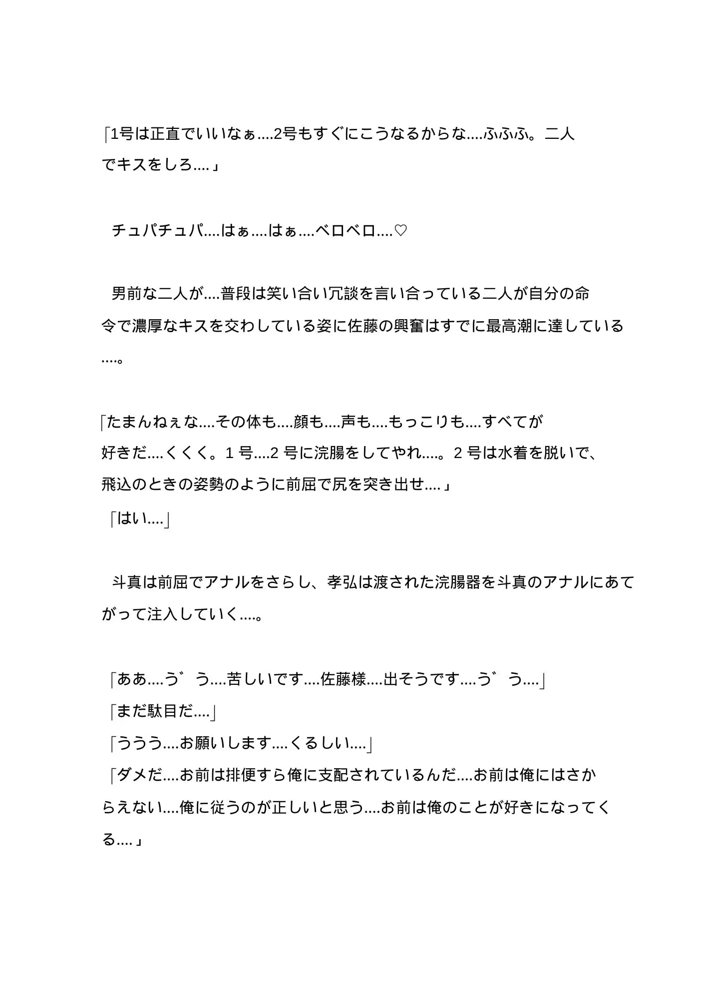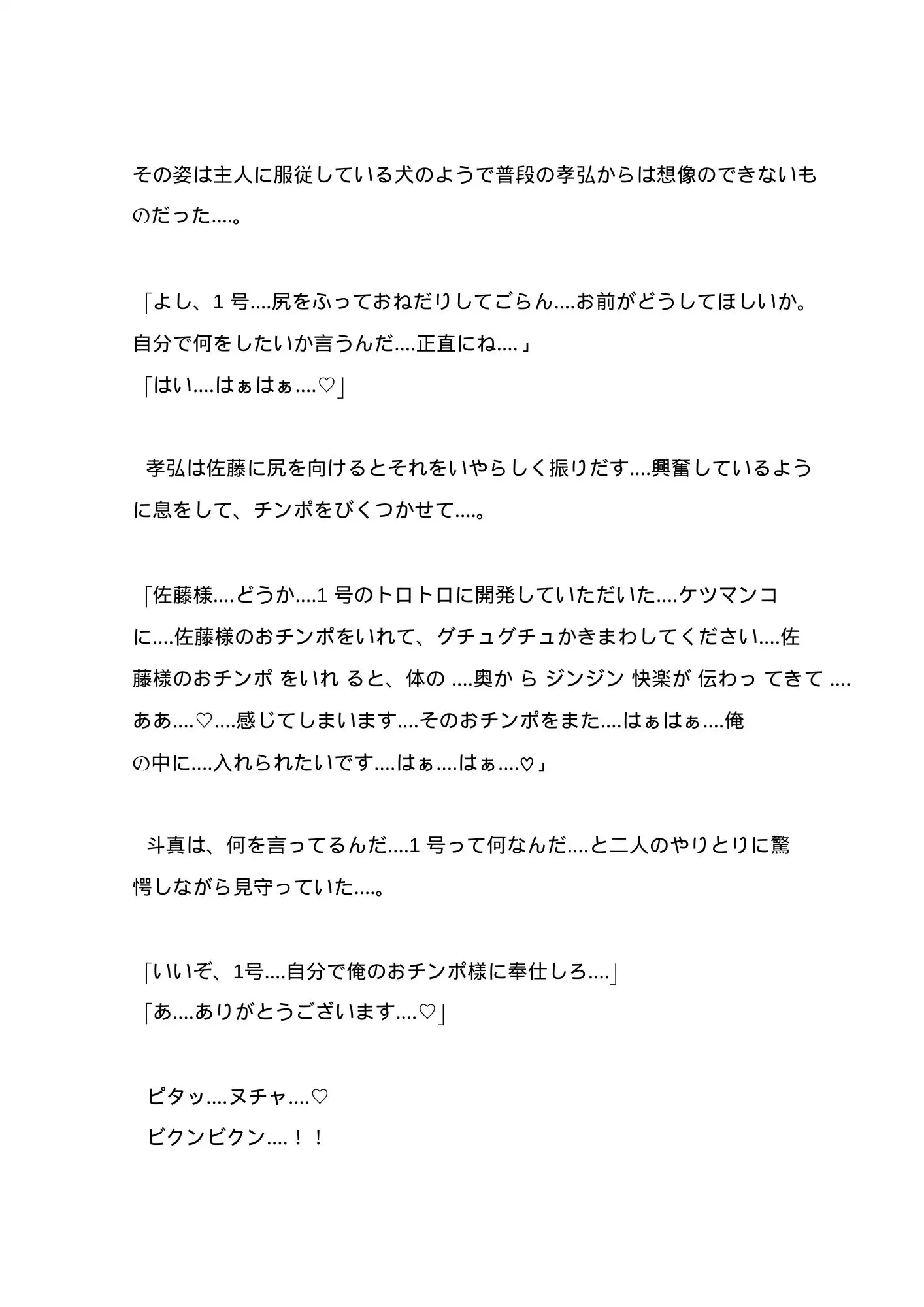 催○術をかけるマネージャー目線で物語を展開しています。催○、開発、キス、奉仕、公開セックス、親友同士、イラマチオ、飲精、浣腸等