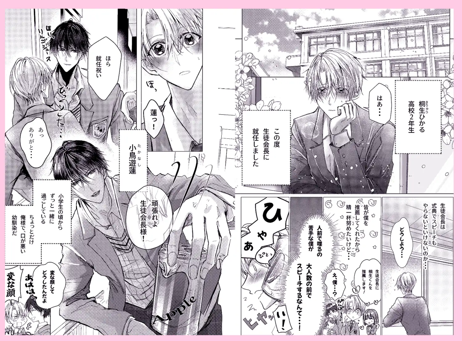 不安な日々を過ごすひかるに幼馴染の【(攻)小鳥遊蓮】がスピーチの練習を手伝う事になり