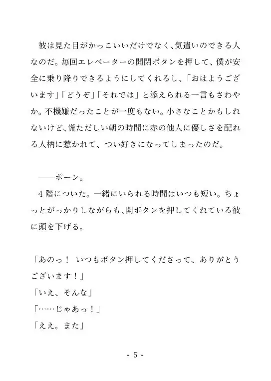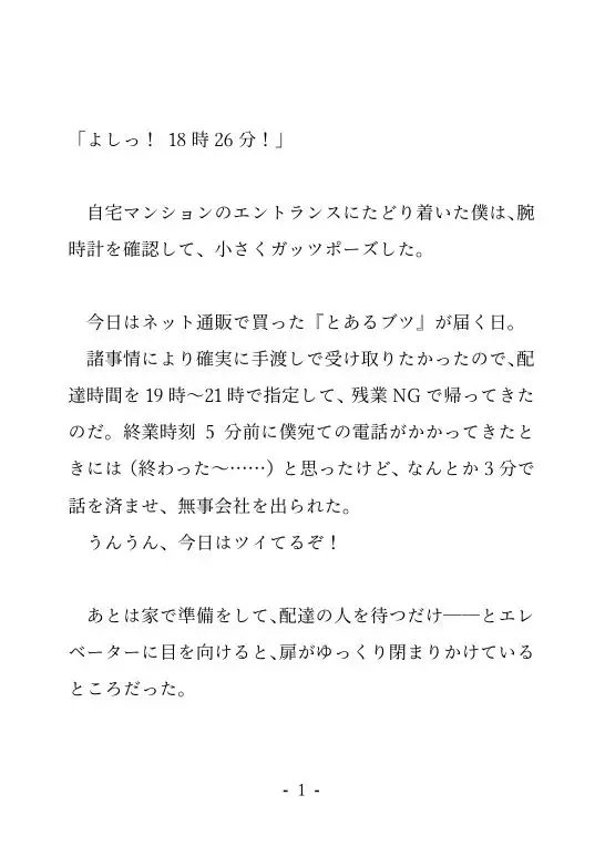 甘瀬は、自宅マンションのエレベーターで毎朝一緒になる”彼”にひそかな片想い中。告白する勇気もなく、えっちな妄想で欲を発散しようとエロ通販でポチッたところ、それが”彼”にバレてしまい……!?