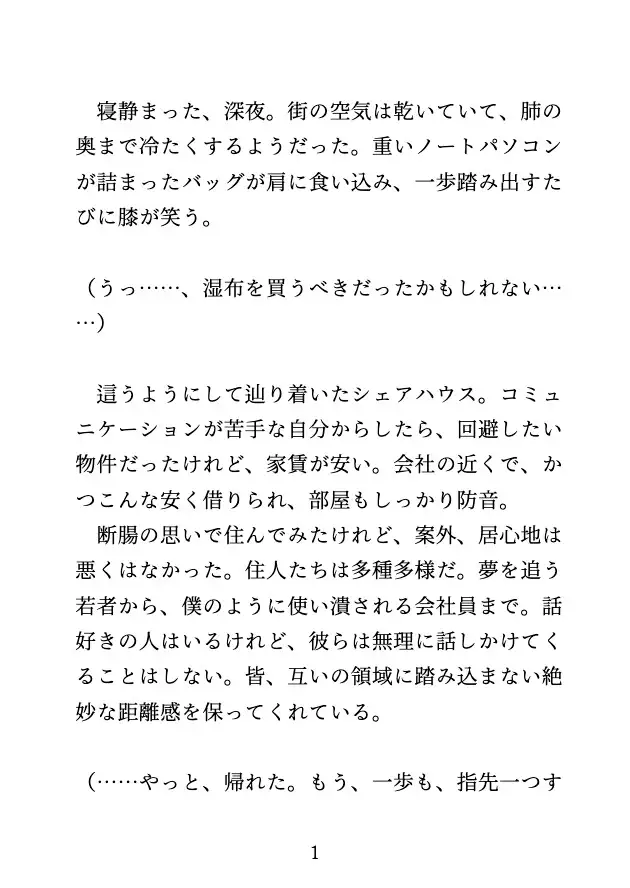 残業で這うようにシェアハウスへ帰宅した会社員の綾太。