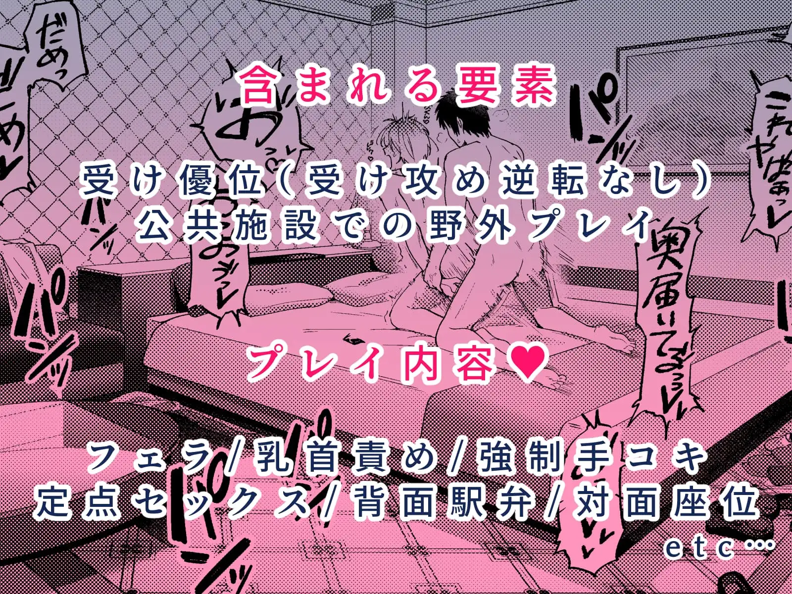 公共施設での性的行為、受け優位展開(受け攻め逆転無し)———————————————-