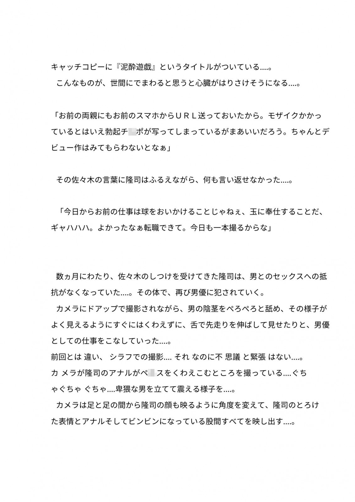 プロ野球選手が薬を盛られて痴態を撮られ、それをネタに脅されながらAV男優としてデビューさせられてしまうという設定です。