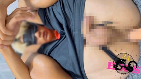 チンコを攻められ続け気持ちよく感じちゃってます笑笑オナホとローションで手コキ攻め!!!