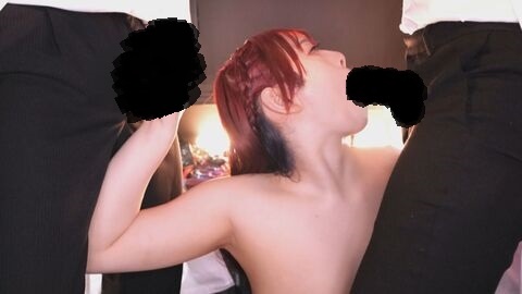 ムラムラした男達は勃起したチ〇ポ出し、彼女に咥えさせる。
