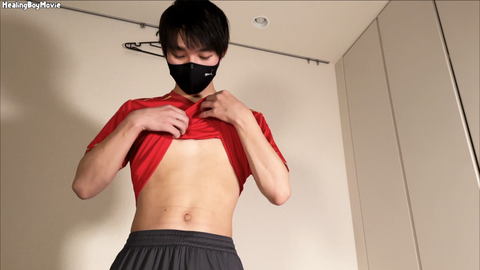 カメラの前で撮影スタッフに攻められ、衝撃の2連続射精を披露してくれました!動画冒頭でインタビューを楽しんだ後は、服を脱がせて裸を見せてもらいます。