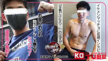 そして一発目の男性は目がクリっとした爽やか好青年のような筋肉質男性を発見!声をかけると丁寧にインタビューに答えてくれる男性。せっかくなので写真を撮らせてほしいとお願いすると「写真だけなら、、」と言う事で場所を移すことに。写真を撮り終えさらなる交渉を試みるスタッフ。下半身も少し見せて、おおきくなる??など下の誘いに出始める。さすがに拒否するかれだがお金につられ最終的には勃起ちんこを無心でシコシコ!だが全然大きくならない為スタッフが扱くとムクムク大きくなり始めた!?男性相手でも気持ちよければ男性は勃起してしまう??しっかりと濃厚精子を出し、イケメン筋肉質男子の射精シーンをGET!!
