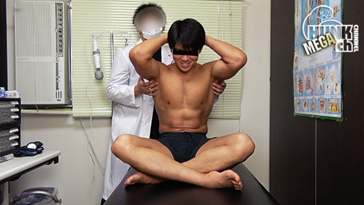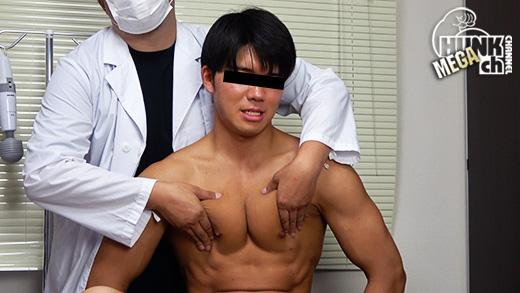 出身地:静岡県、部活歴:水球、ちんこ勃起時:15cm、胸囲:111cm。ゴツゴツの水球筋肉を間近でじっくり観察触診!!筆で乳首を責められて感じちゃう!!ローションをつけてチンコをシゴかれると恍惚とした表情を見せ、いやらしい声が漏れ出し、さらに初めて男にフェラされて快感!!電マを当てられると腰が動いてしまい、高速手コキで真っ白ザーメンを放出!!イった直後の亀頭責めには腰砕け!!アナル検査では、親指までズボズボされ初めての感覚に気持ち良くてエロい声が出ちゃう!!(のんけ診察室)