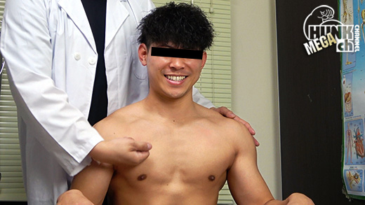 出身地:東京、部活歴:水球、胸囲:102cm、チンコ勃起時:15cm。自慢の胸筋をピクピク、小さい乳首は感度良好!!脇腹をくすぐられると情けない声が出てしまう!!吸引検査でチンコのおもちゃを頬張り吸い付く!!チンコの感度も良く、ガッチガチに勃起したら初めての男のフェラにも感じまくりで激勃起!!週間分の精子を勢いよく発射したあとは、アナル検査で指をズボズボされても気持ちよさそう!!?水を入れたら噴射させる!!(のんけ診察室)