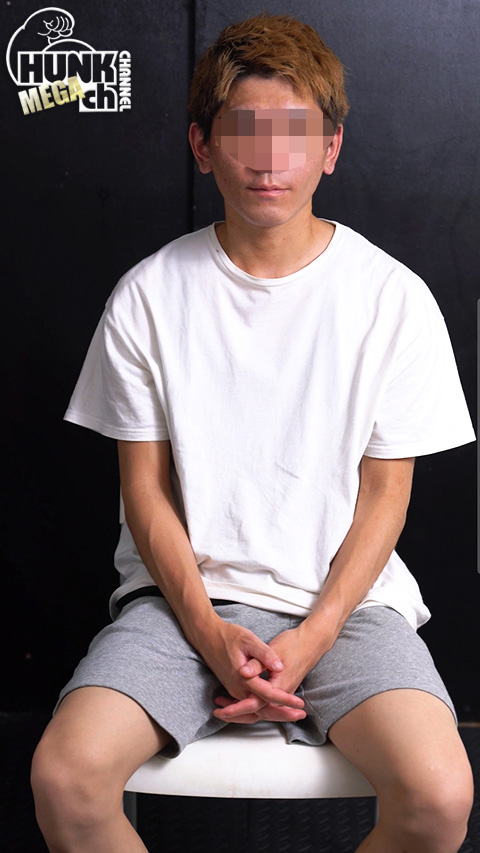 ヤンチャ系のイケメンがやってきました。オラオラの感じで少し強面な雰囲気!脱いでみるとチンコは通常時からだらりと垂れたデカチンで、身体を触ると徐々に反応!乳首なども感じやすいようで顔をしかめっ面にしながら必死で耐えている姿がギャップで可愛らしくも見えます。フル勃起したデカチンは真っ直ぐで若さも感じられるフレッシュさ!最後は手コキされている手にしがみつき、耐えながらの精子を放出。