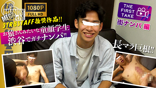 童顔やお猿さん系の顔がタイプなお客様必見!クリクリの目に小顔、笑顔が素敵な20歳大学2年を渋谷でガチンコナンパ!最初は当然警戒する彼を音楽の話で落とし後日スタジオに来てくれました!いやぁ可愛いです!身体は細身の体毛薄め!チンコはドロン!と仮性包茎のデカマラ!美味そう!ゾウさんパンツに着替えてもらいエロ動画を流すと即反応する彼…ローション攻めオナホ攻めに思わず「うわ気持ちいい!」と満足げ!その後巨大オナホに向けて腰を振り振りあまりの気持ちよさに「いっちゃいそうです!」その後交渉を経て男フェラも初体験!複雑な表情の彼だったがフェラテクに思わずうっとりモロ感!中盤M字開脚でアナル丸見え羞恥体勢に!ラストはねっとりオナホ腰振りで我慢の限界でフィニッシュ!STAFF推奨作品!